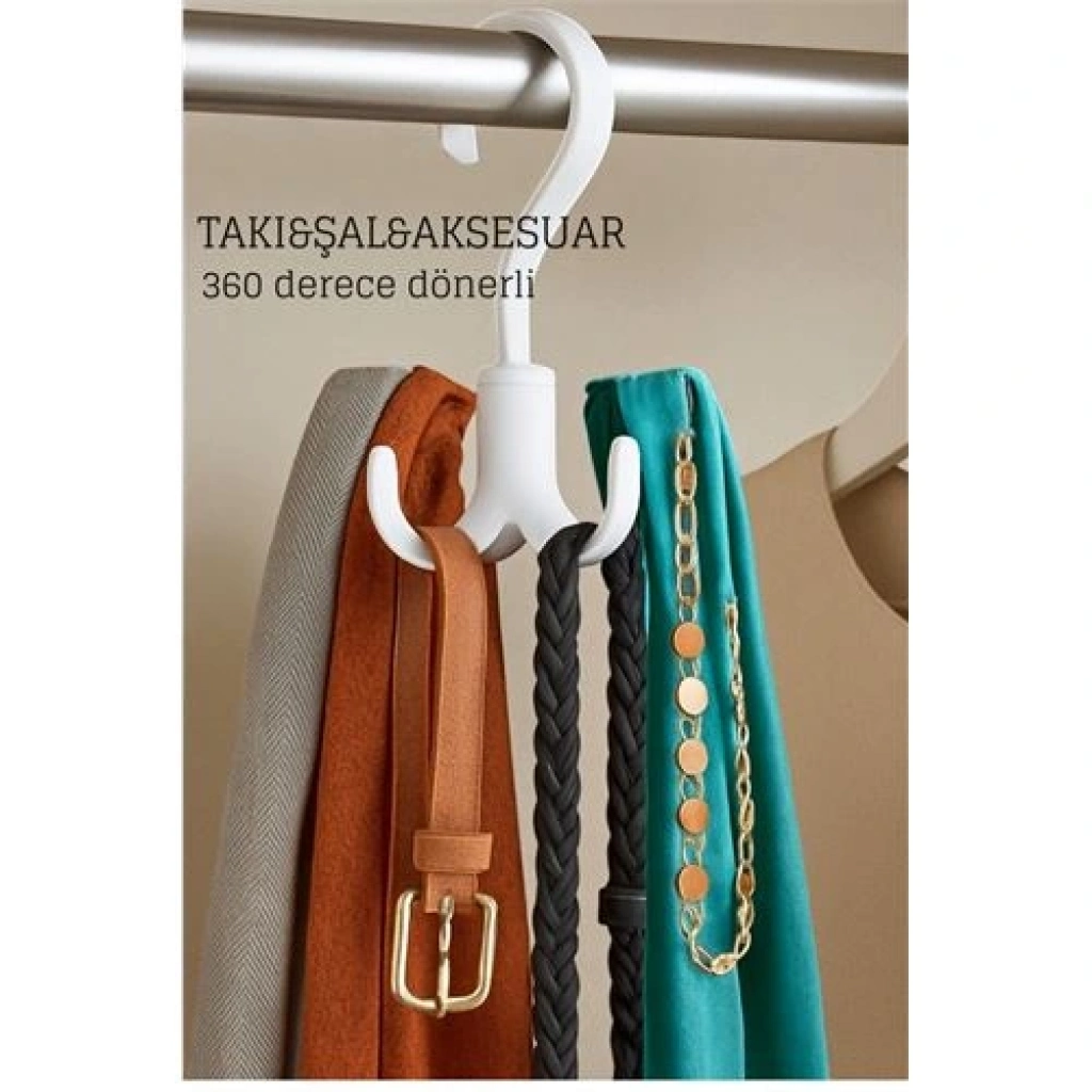 360° Dönerli Kancalı Çok Amaçlı Askı - Dolap İçi Düzenleyici Takı Askısı Şal Askısı