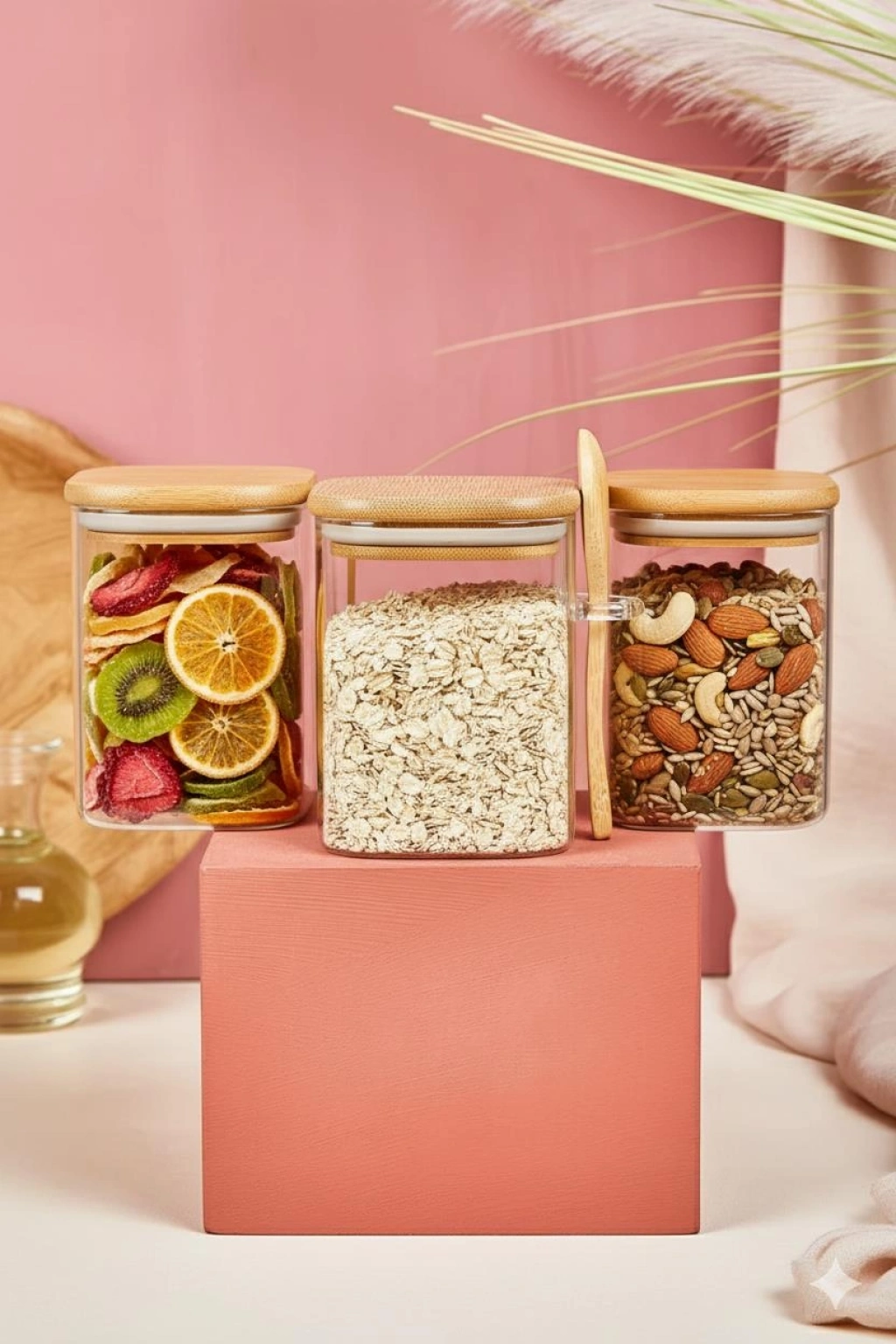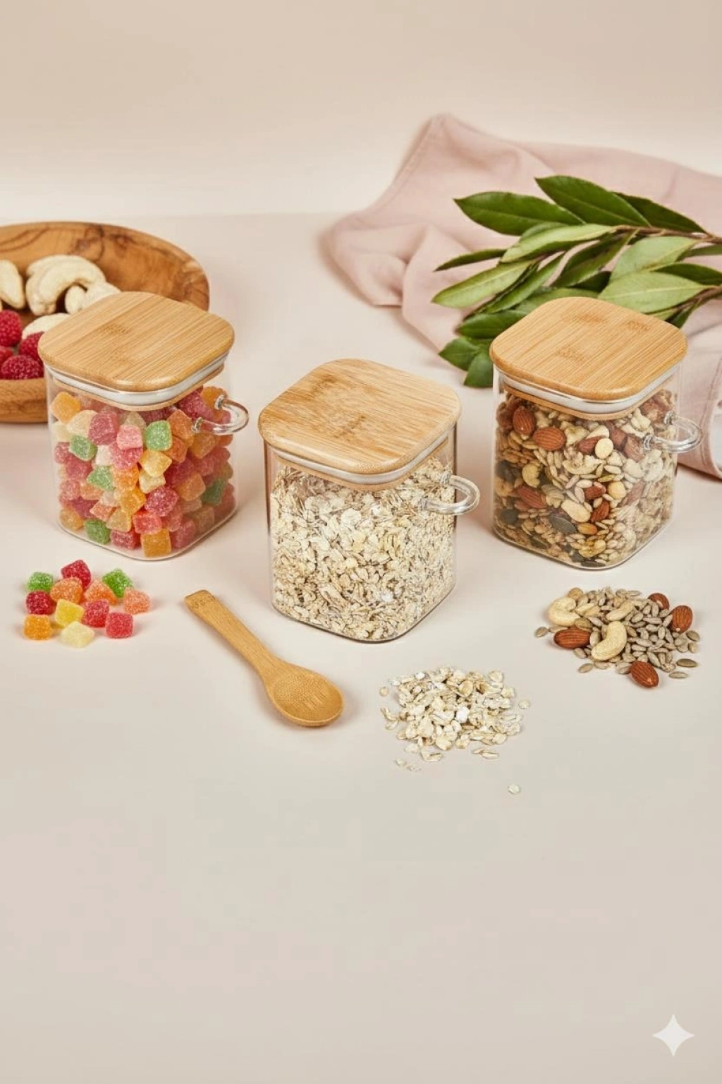 Pratik kullanımıyla mutfakta düzeni kolaylaştıran bu 3’lü cam kavanoz seti, yanında kaşıklı tasarımıyla öne çıkar. Baharat, kahve, şeker ve bakliyatlarınızı hijyenik ve şık bir şekilde saklamanıza yardımcı olur.