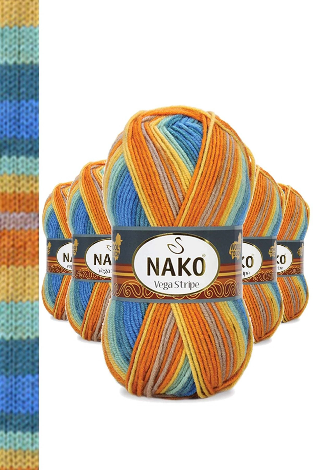 Paket içeriği:   5 Adet Vega Stripe Premium Akrilik El Örgü İpi Yünü No: 82421