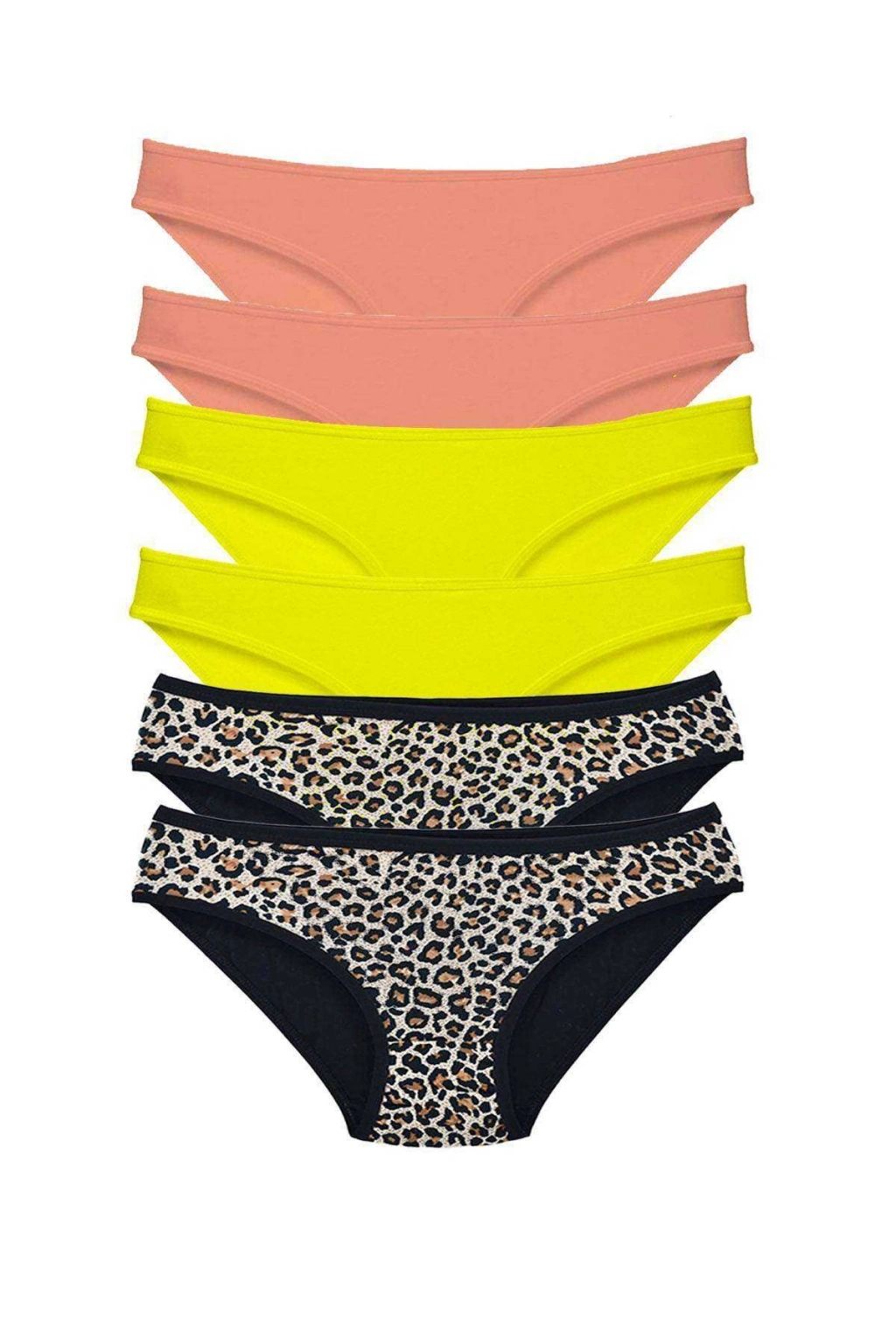 6 Adet Likralı Kadın Slip Külot Leopar Pudra Sarı
