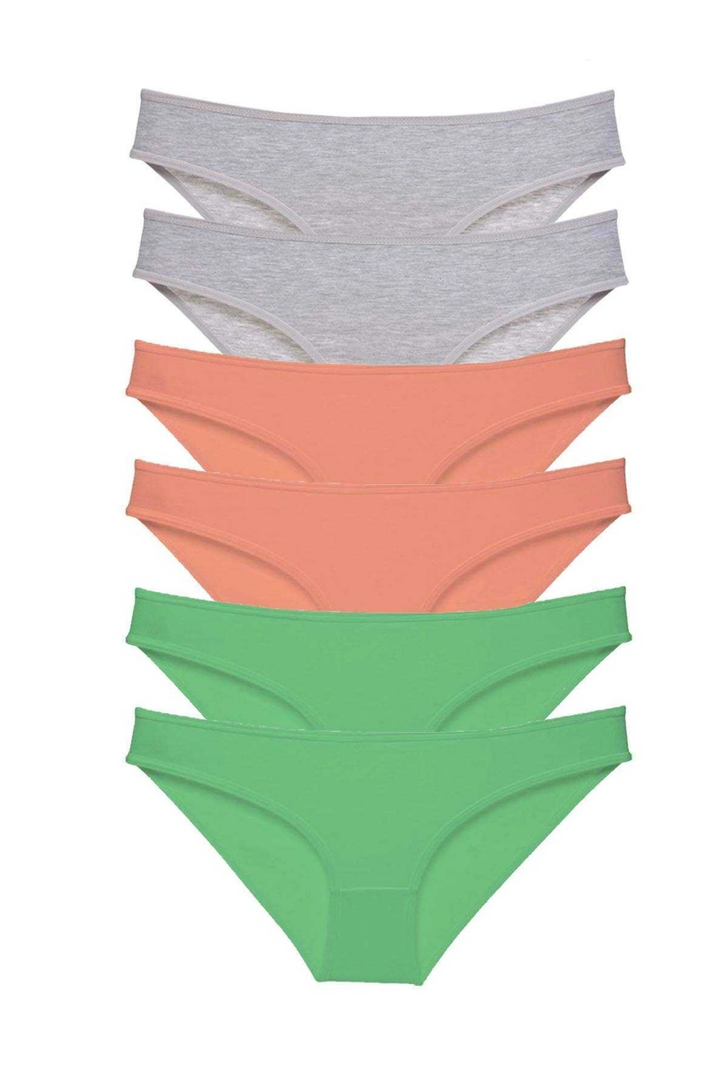 6 adet Süper Eko Set Likralı Kadın Slip Külot Gri Pudra Yeşil