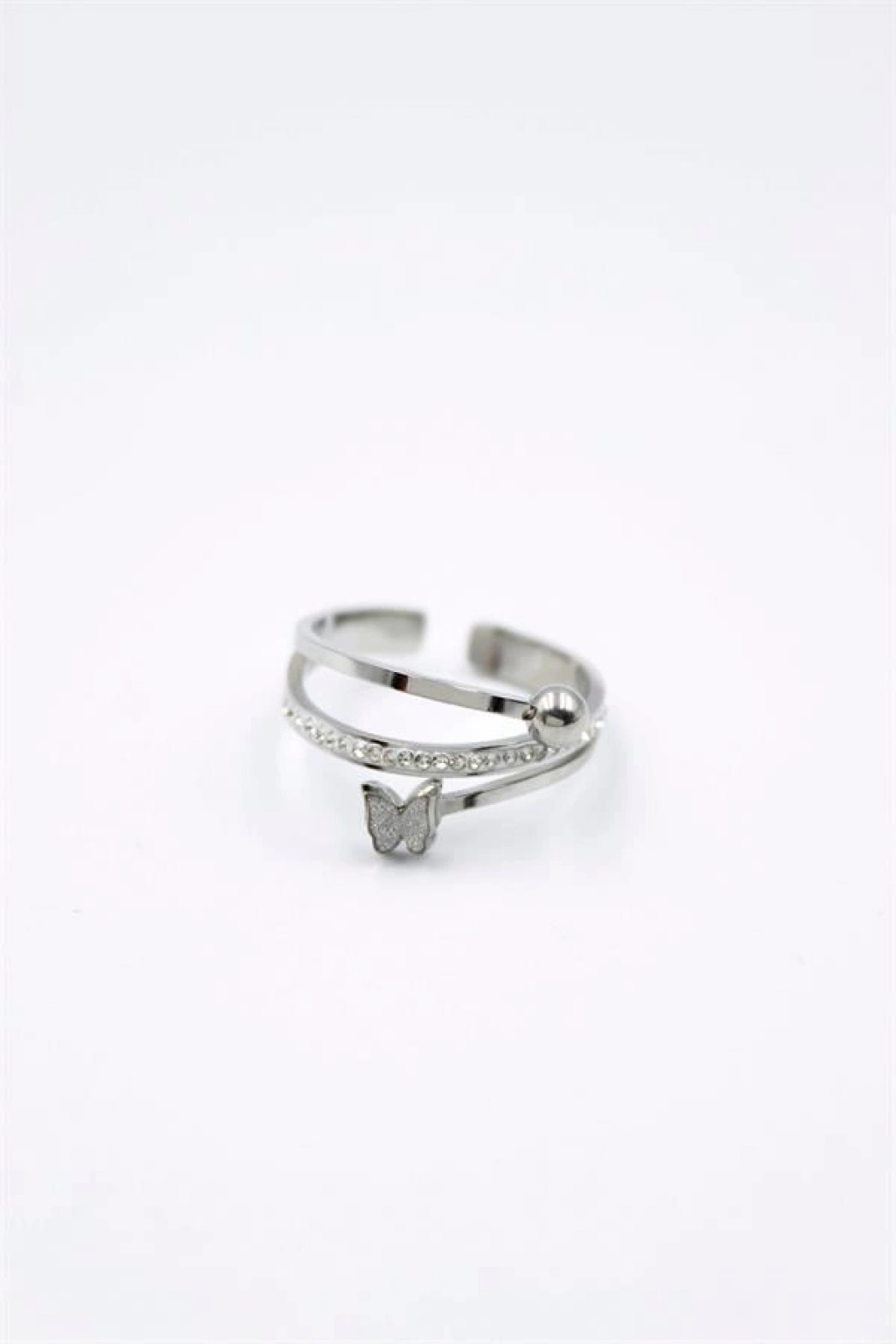 6'lı Taşlı Kelebek Yüzük - Gümüş