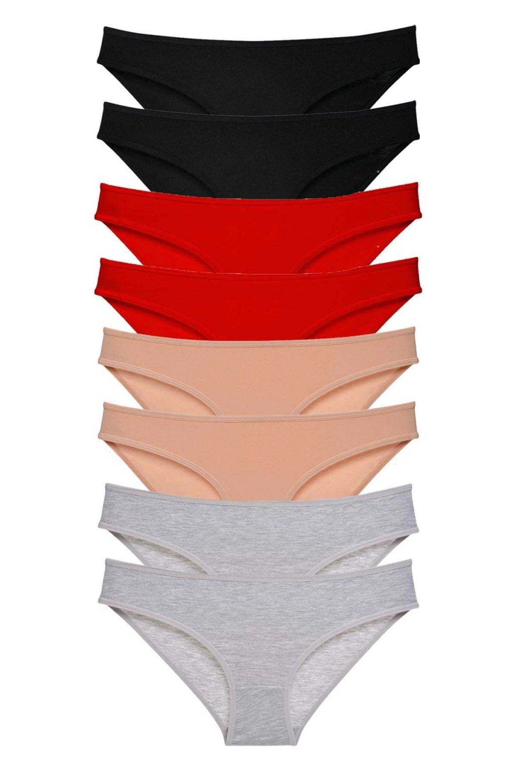 8 adet Süper Eko Set Likralı Kadın Slip Külot Siyah Kırmızı Ten Gri