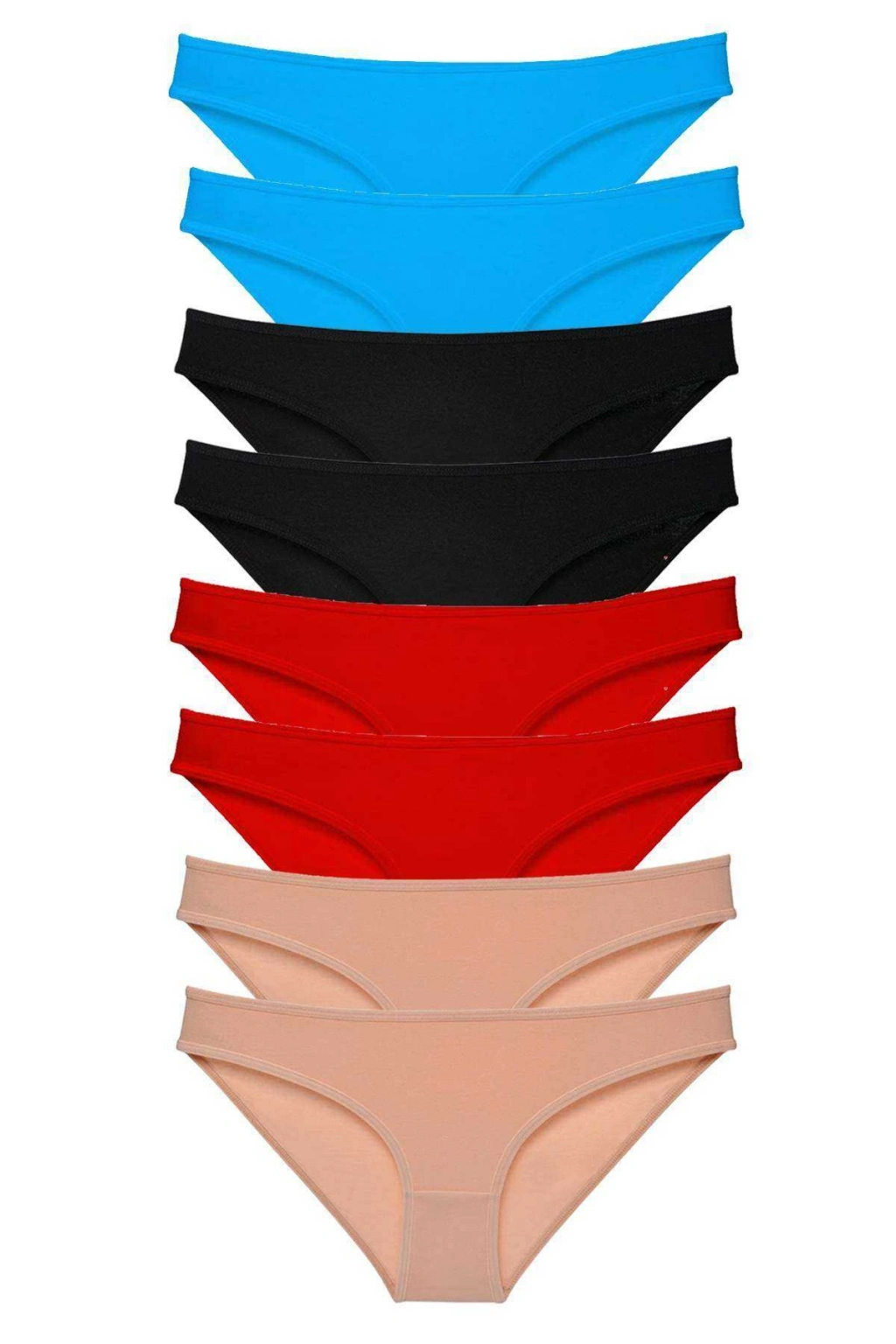 8 adet Süper Eko Set Likralı Kadın Slip Külot Siyah Kırmızı Ten Mavi