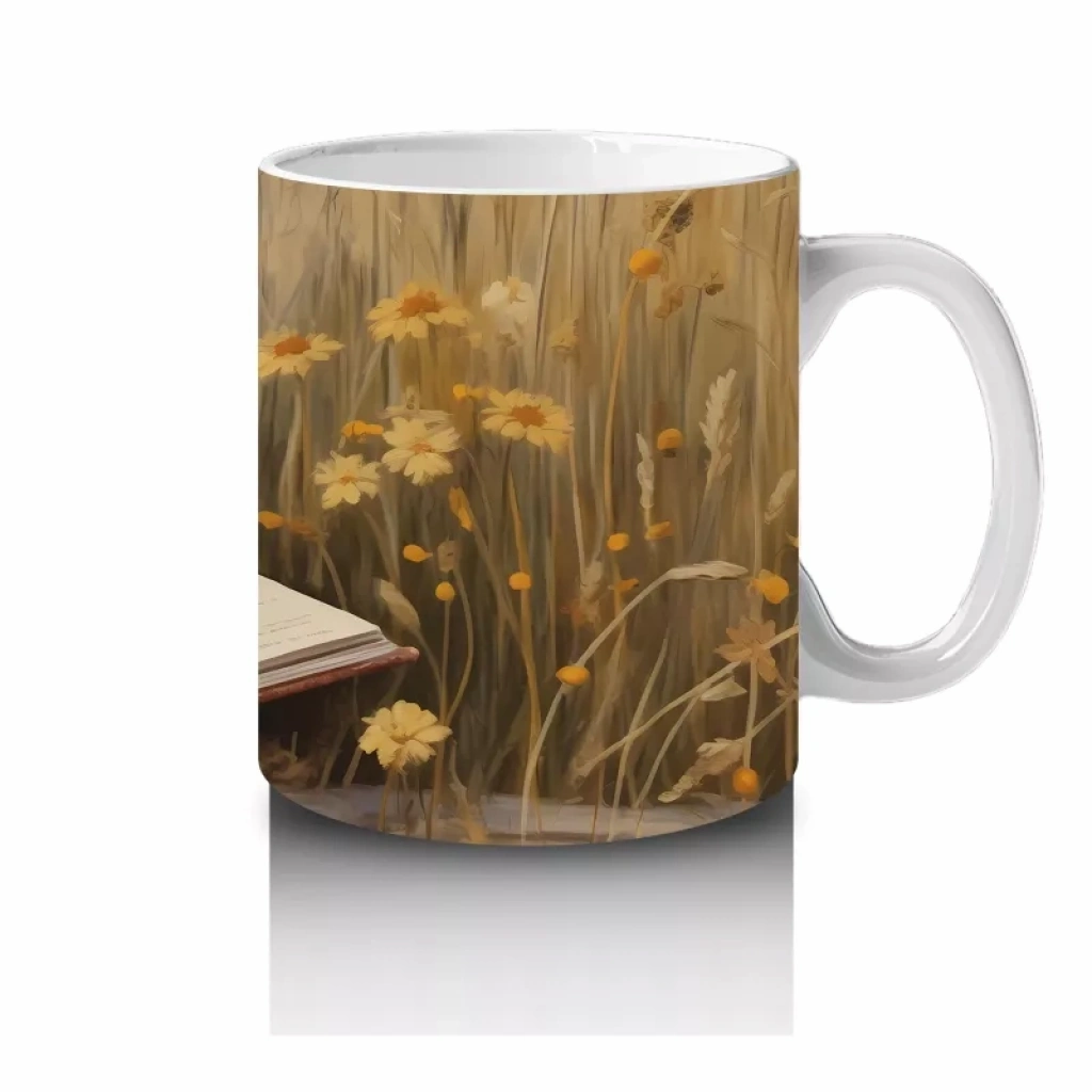 Açık Kitap Üzerinde Oturan Gözlüklü Yavru Köpek – Baskılı Kahve Kupası
