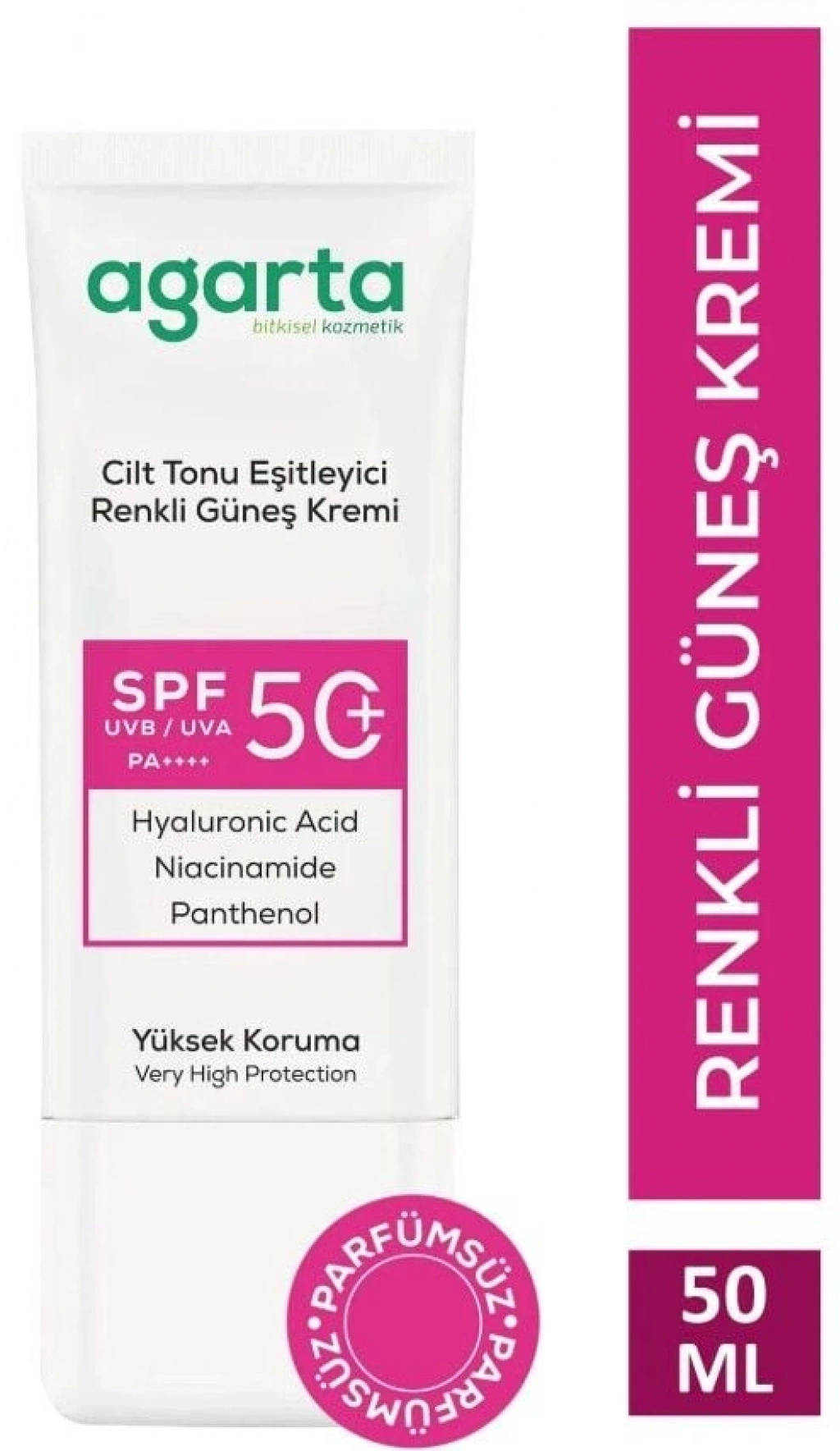 Agarta Cilt Tonu Eşitleyici Renkli Kapatıcı Etkili SPF 50 Güneş Kremi 50 ml