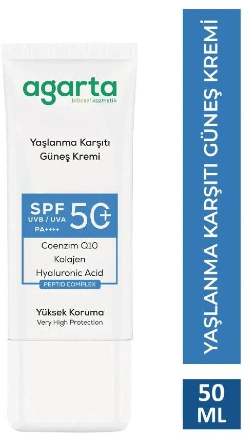 Agarta Yaşlanma Karşıtı Collagen Destekli SPF50 Yüz Güneş Kremi 50 ml,