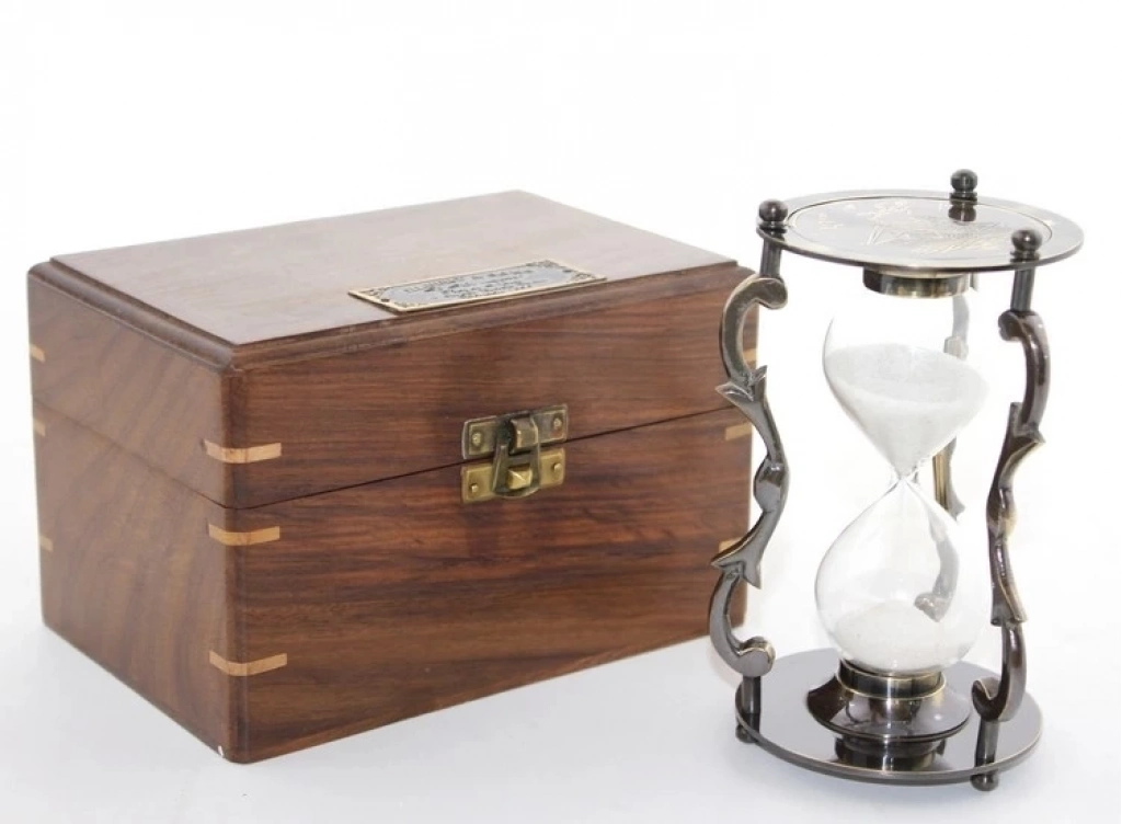 Ahşap Kutulu Pirinç Kumsaati Ksk2060 Ürün Ölçüleri 16*10 Cm