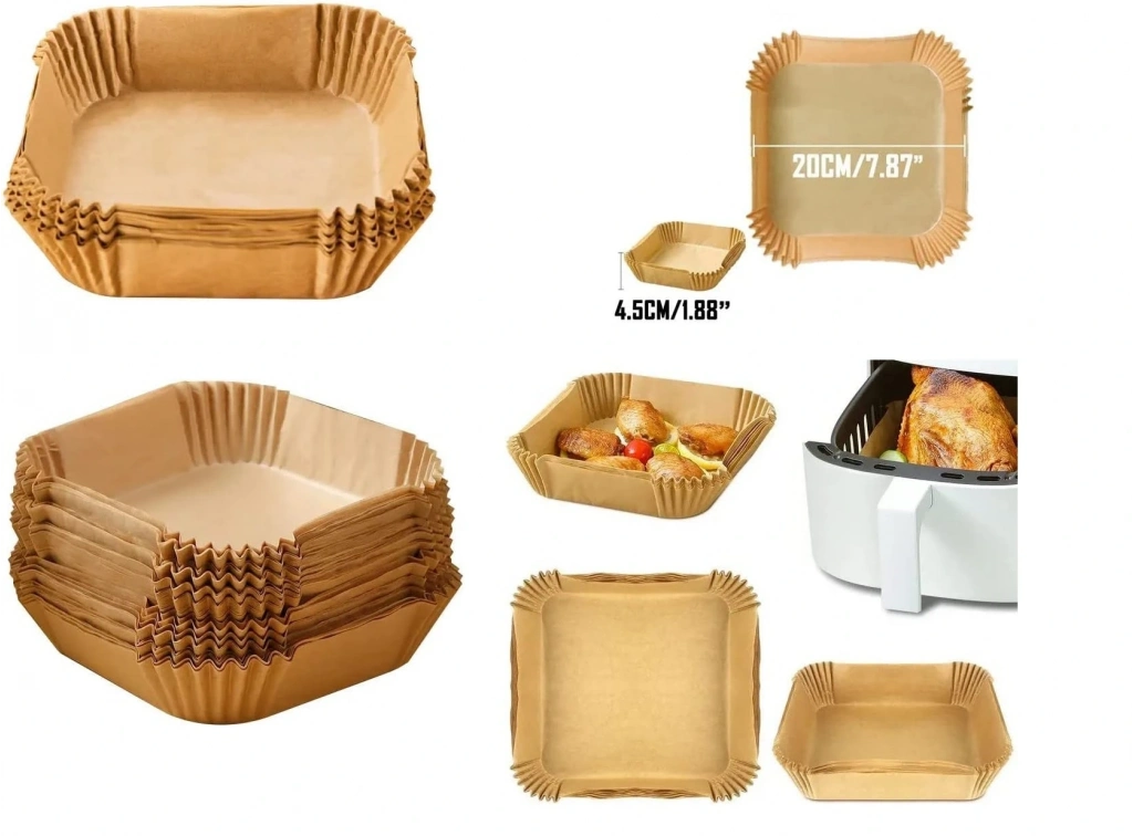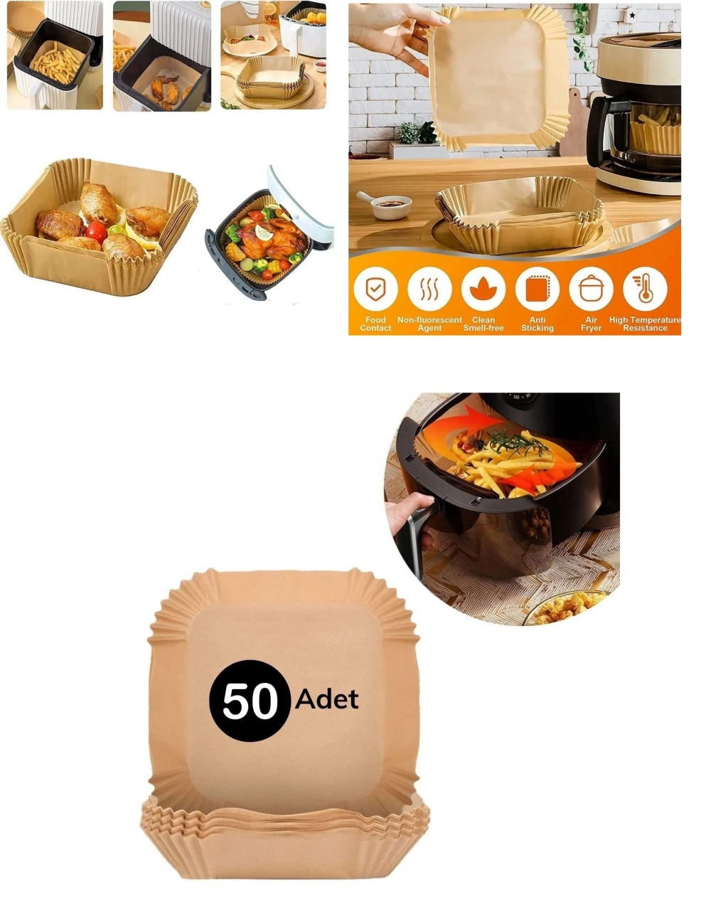 Paket İçeriği: 50 Adet  Kare Tabak Model  Air Fryer Pişirme Kağıdı