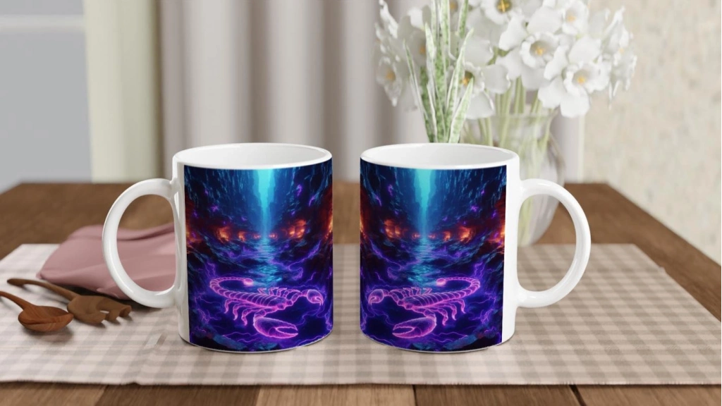Gizemli ve derin ruhlu Akrep burcuna özel bu astral denizaltı dünyası temalı kupa, karanlık suların büyüsüyle sezgisel enerjinizi tamamlıyor. Her yudum bir sır gibi...