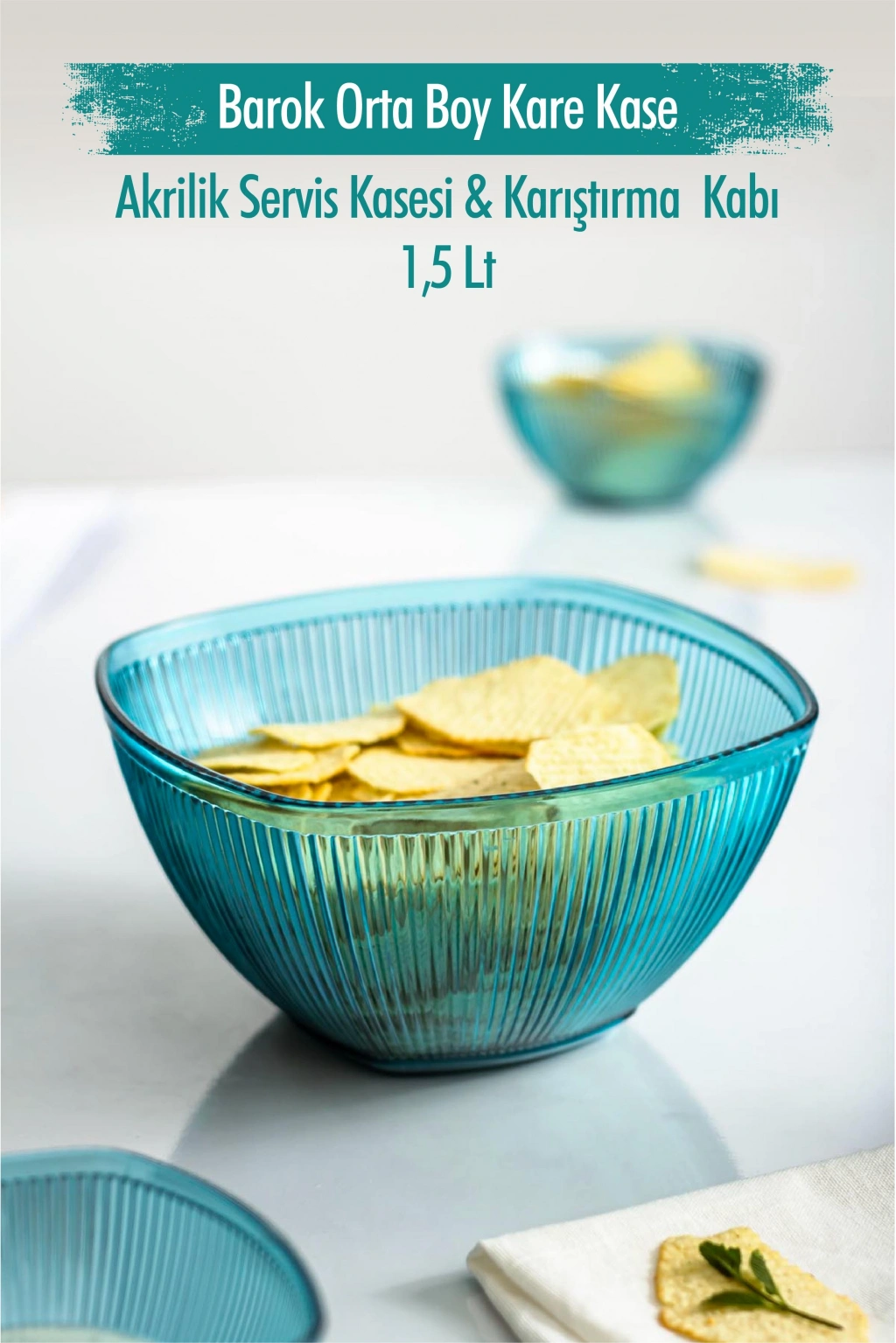 Akrilik Barok Aquamarin Orta Boy Kare Meyve & Salata Kasesi & Karıştırma Kabı / 1,5 Lt (CAM DEĞİLDİR)