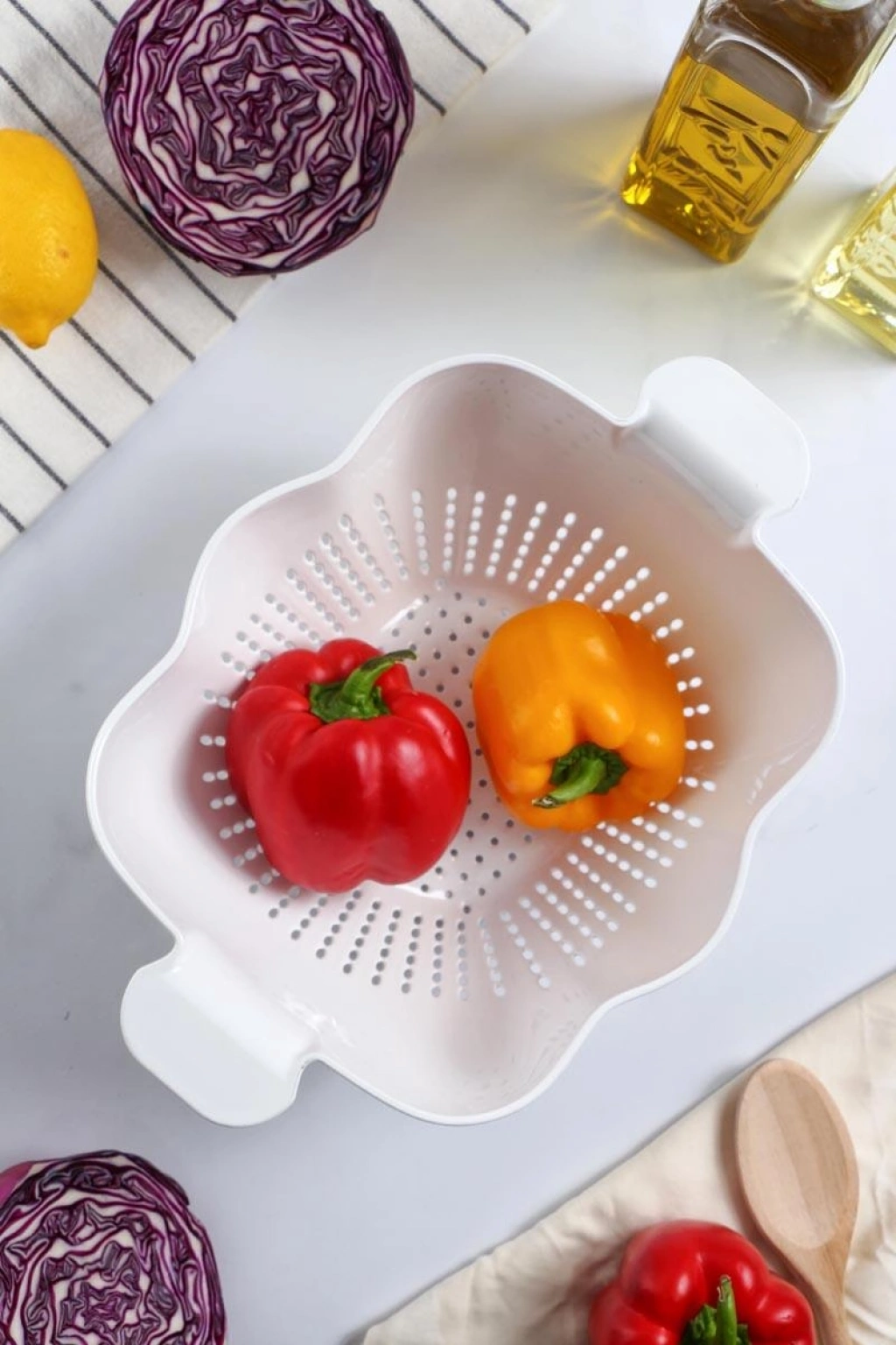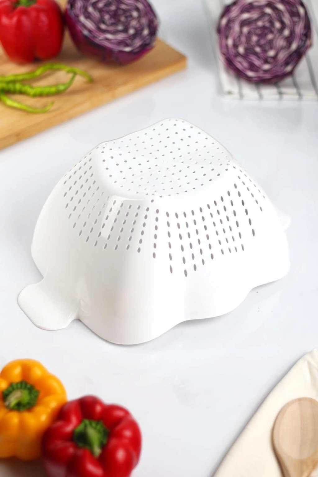 Ew's akrilik süzgeçler ergonomik tasarımı ve ideal boyutu ile mantı ve makarnayı süzmede, meyve ve sebzeleri yıkamada kolaylık sağlar.