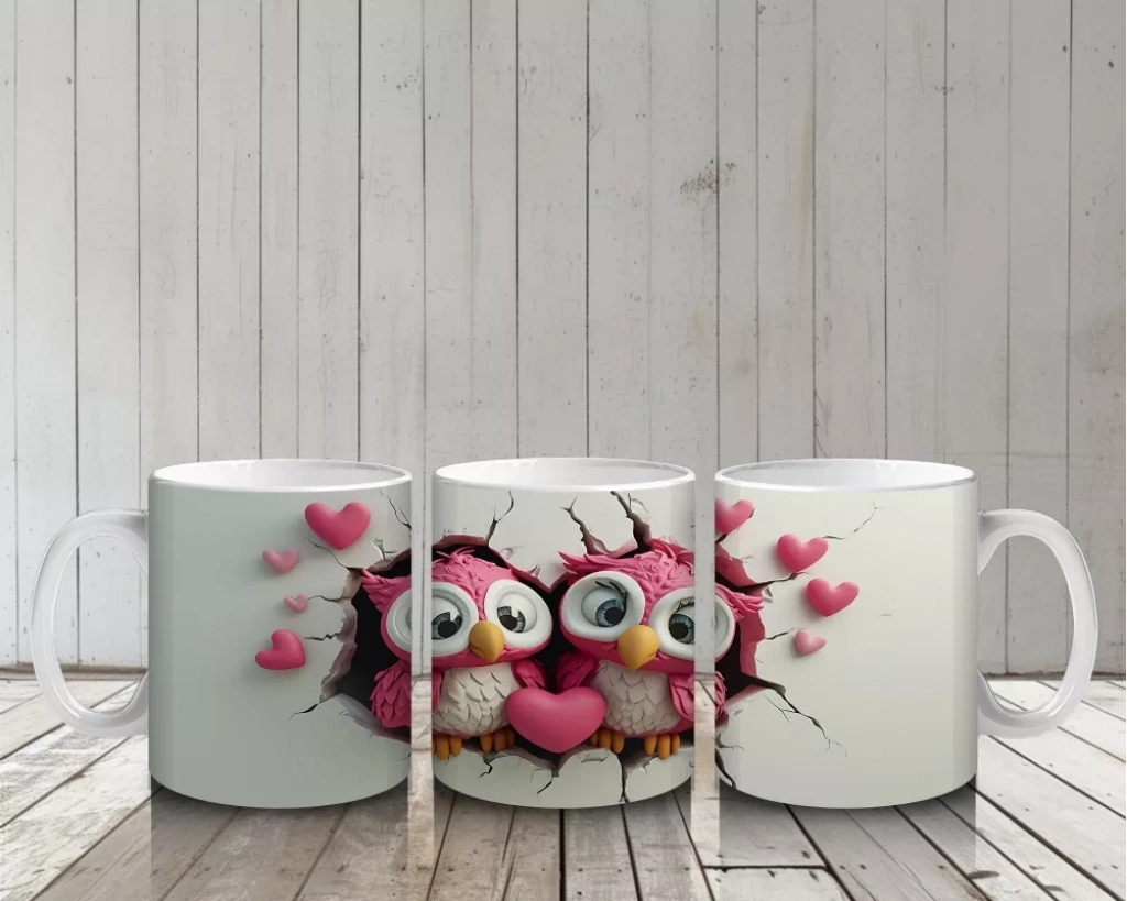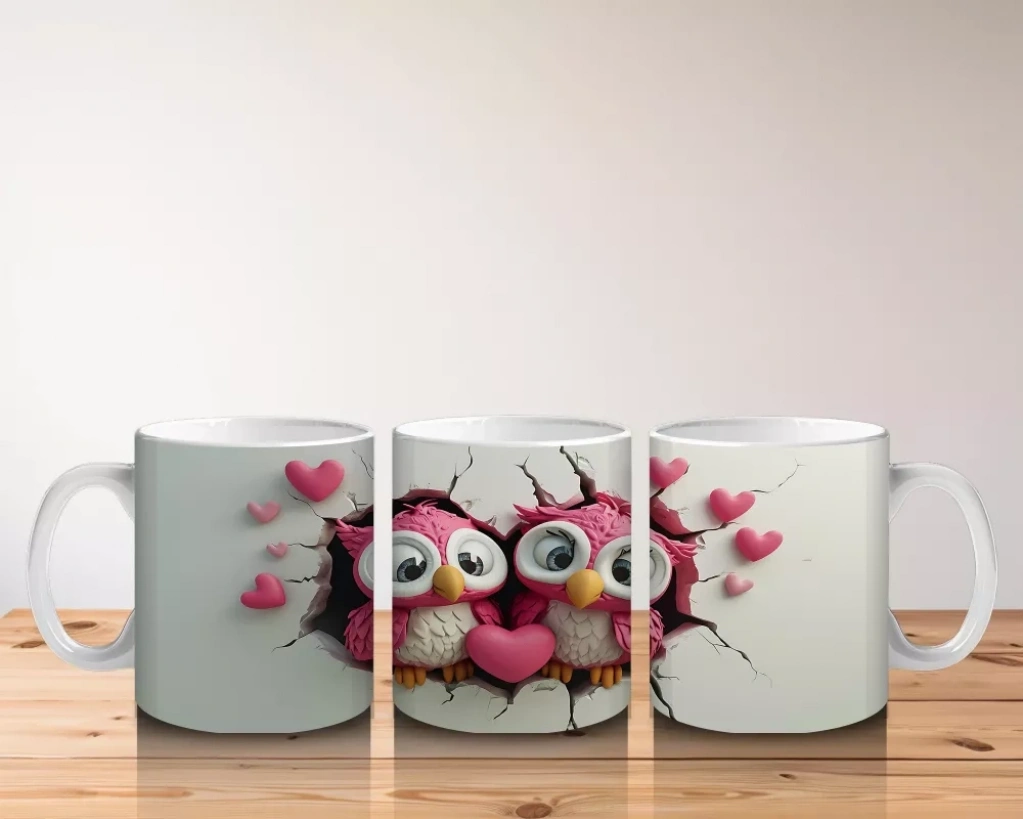 Pembe kalpler eşliğinde poz veren baykuş çifti, sevginin sıcaklığını kahve fincanınıza taşıyor. Hem sevimli hem anlamlı bir hediye arayanlar için romantik bir seçenek.