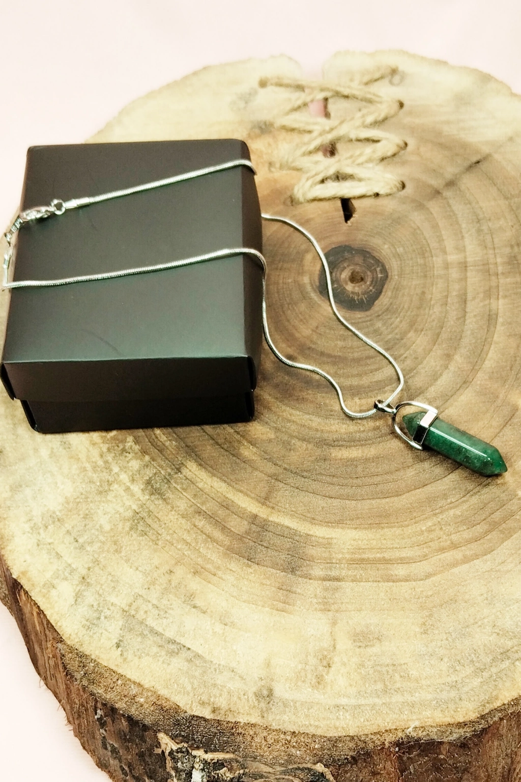 Aventurin Doğal Taşı Zincirli El Yapımı Tasarımlı Kolye Uç: 3,5 cm Zincir: 20 cm Kutulu