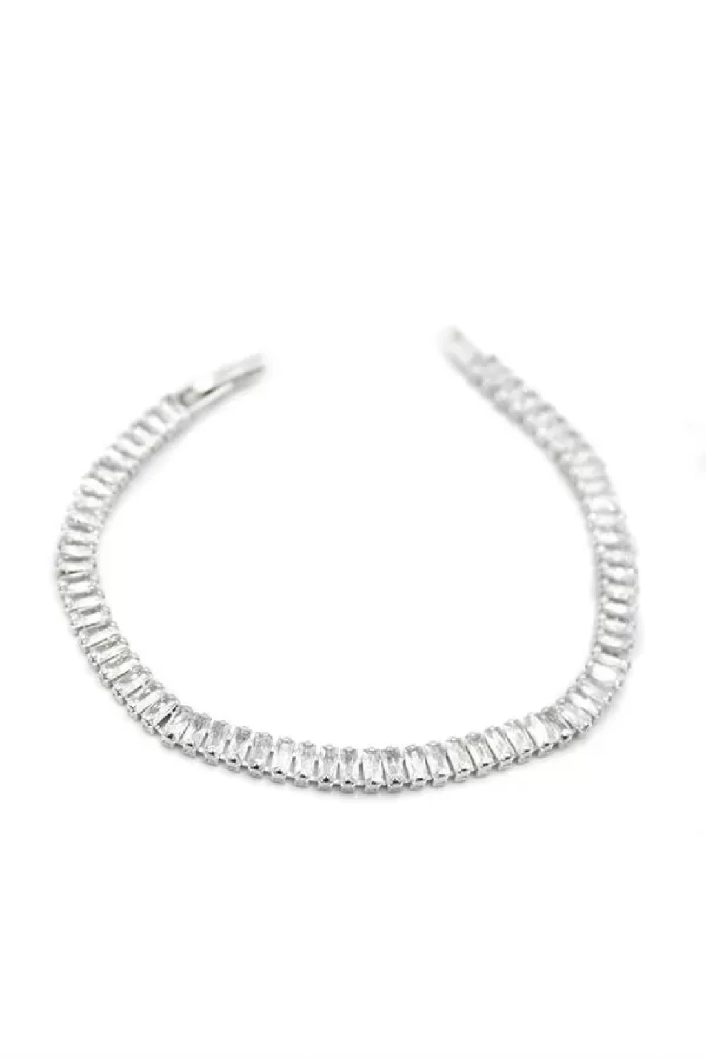 Baget Taşlı Su Yolu Bileklik - Gümüş