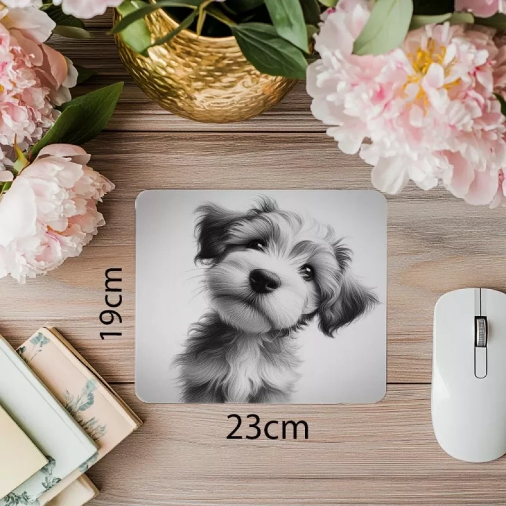 Baş eğmiş sevimli yavru köpek mousepad ile masana sıcaklık kat! Şirin tasarım ve rahat yüzeyiyle her an oyun ve çalışma keyfini artır.