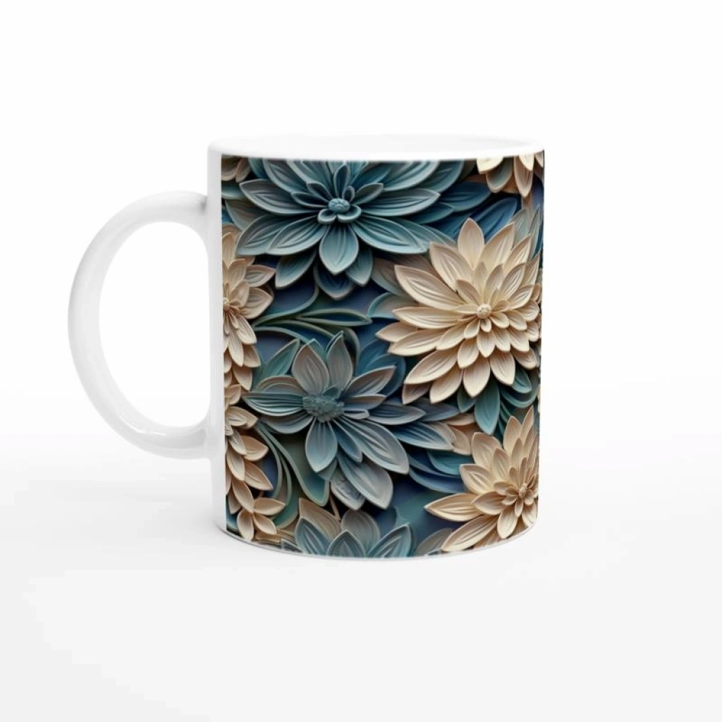 Derinlik hissi yaratan yaprak ve çiçek katmanlarıyla tasarlanan bu kupa bardak, zarif sunumlara eşlik eder.