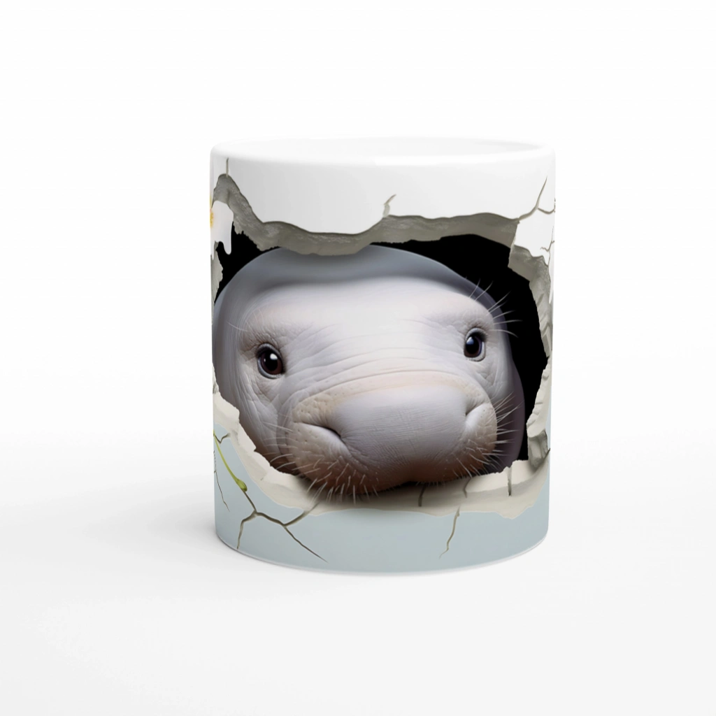 Beton Delikten Bakan Sevimli Fok Temalı Su Altı Kupa Bardak