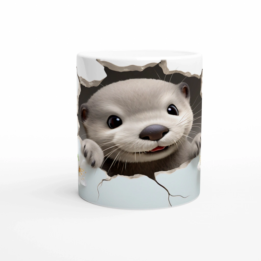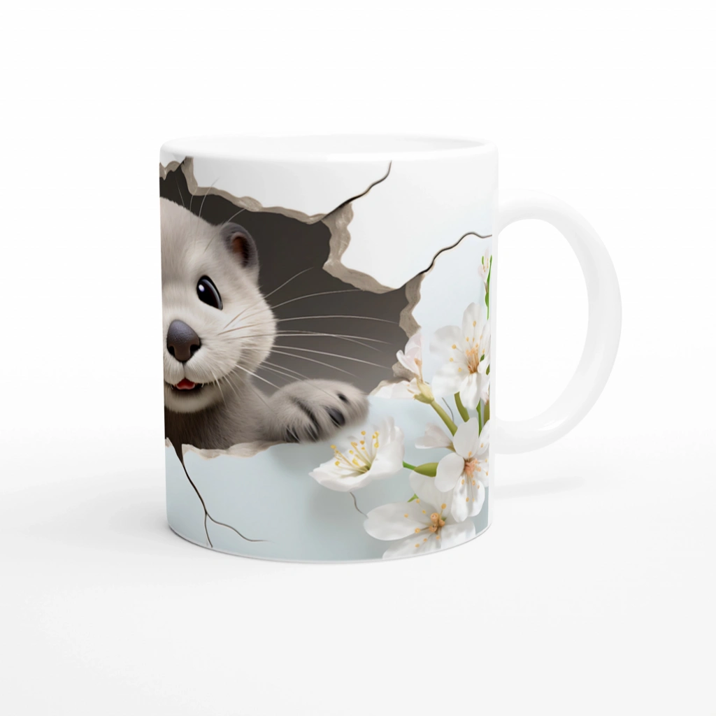 Beyaz Çiçekler Arasında Gülümseyen Su Samuru Baskılı Kupa Bardak