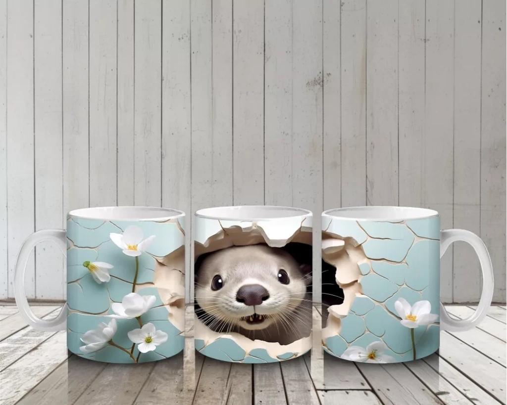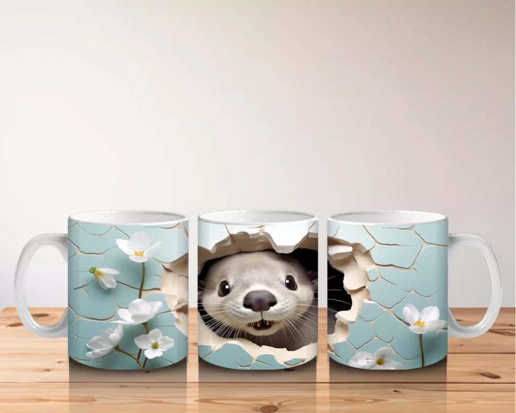 Beyaz çiçeklerin önünde duran bu şirin su samuru, bakışlarıyla kalpleri fethediyor. Doğayla bütünleşen sade ama etkileyici bir tasarım arayanlara ideal bir kupa.