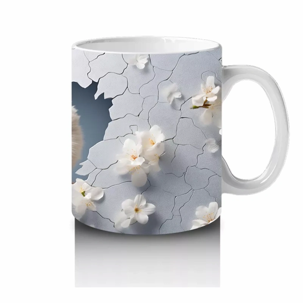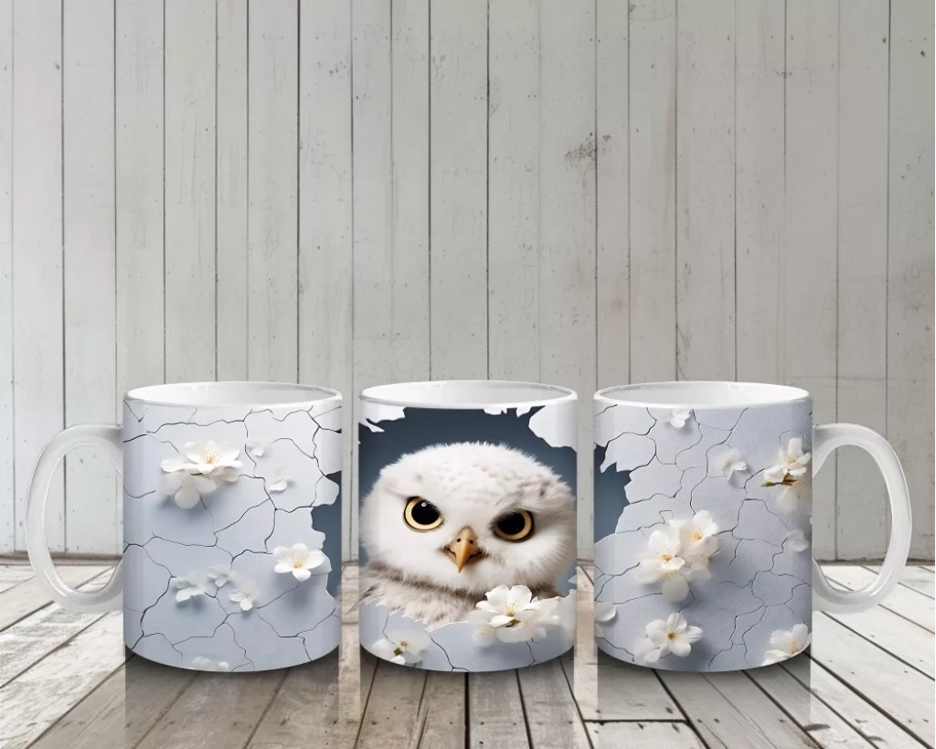 Beyaz çiçeklerin üstünde dikkatle etrafı izleyen bu baykuş, bilgelik ve zarafeti bir araya getiriyor. Sade ama anlamlı bir tasarım arayanlar için huzur verici bir kupa seçimi.