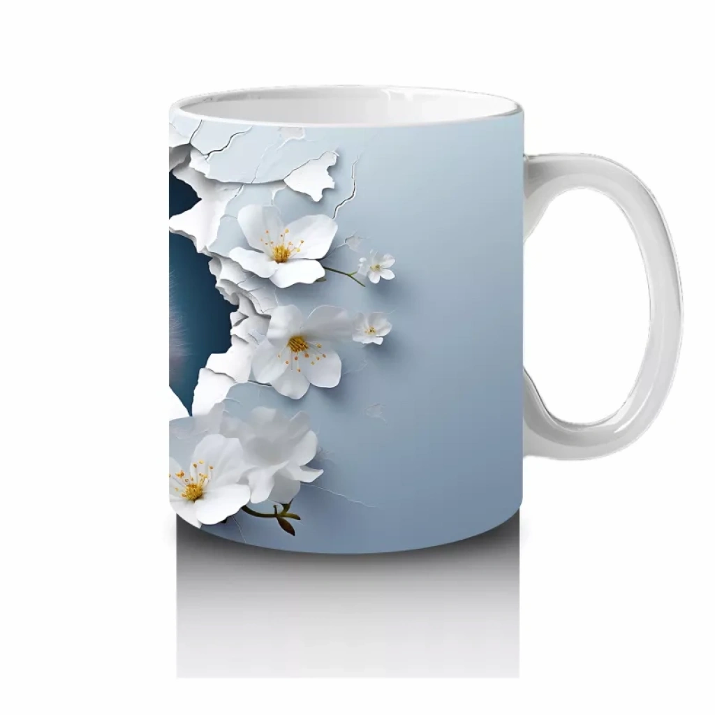 Beyaz Çiçeklerle Çevrili Sevimli Baykuş – Baskılı Kahve Kupası