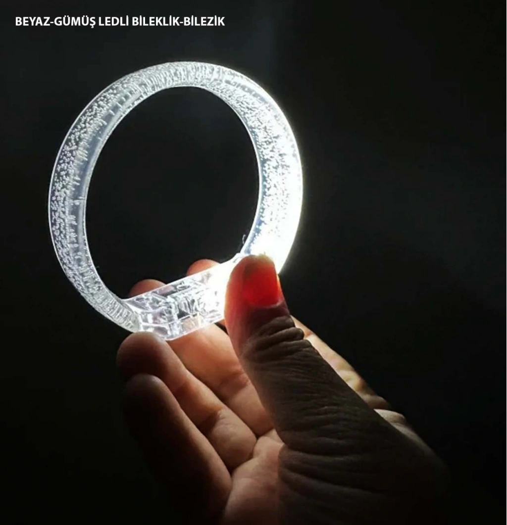 Beyaz-gümüş Led Işıklı Baskı Yapılabilen Pilli Bileklik Bilezik 1,5 Cm Genişlik