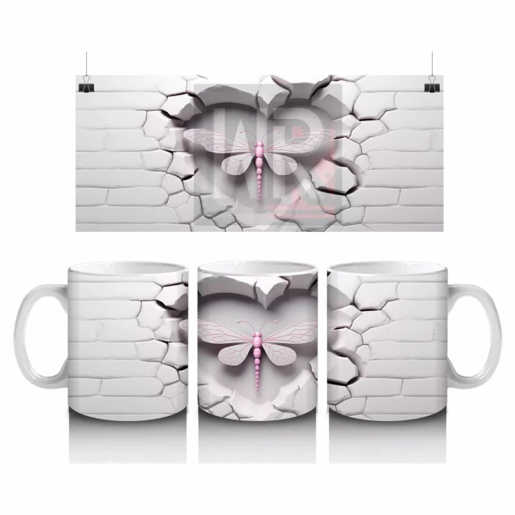 Beyaz Tuğla Üzerinde Pembe Yusufçuk – Baskılı Kahve Kupası