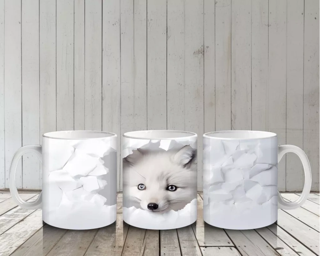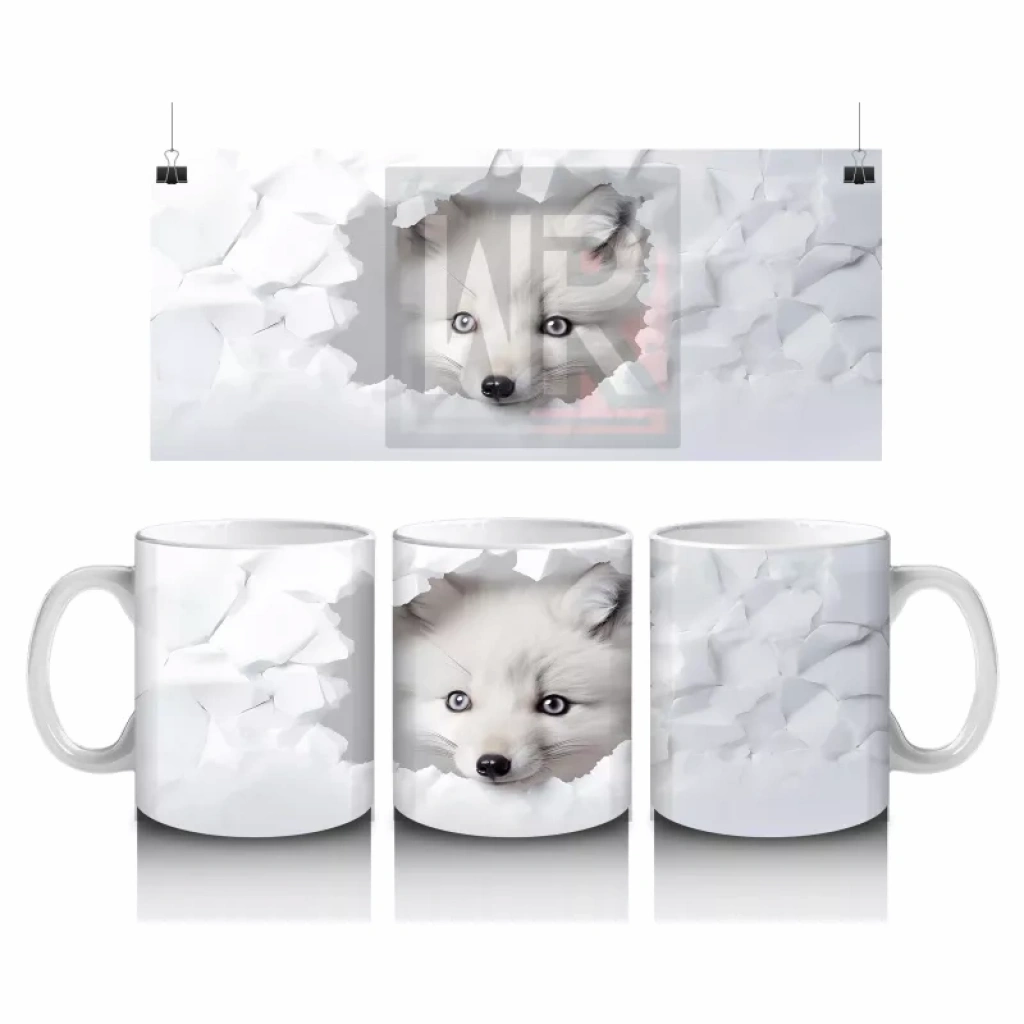 Beyaz Yapraklar Önünde Yavru Tilki – Baskılı Kahve Kupası