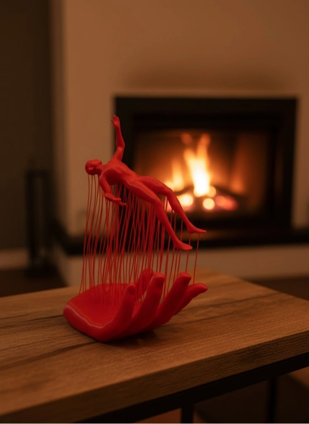 Sanatsal detaylarıyla öne çıkan El İnsan Figürü Kırmızı Biblo, modern dekorasyon anlayışını yansıtan özel bir tasarımdır. El formunun taşıyıcı yapısı ve insan figürünün dinamik duruşu, ürüne derinlik ve anlam katar. Canlı kırmızı rengi sayesinde özellikle açık tonlu zeminlerde güçlü bir kontrast oluşturur. Salon, çalışma odası ve ofis dekorasyonunda rahatlıkla kullanılabilir.