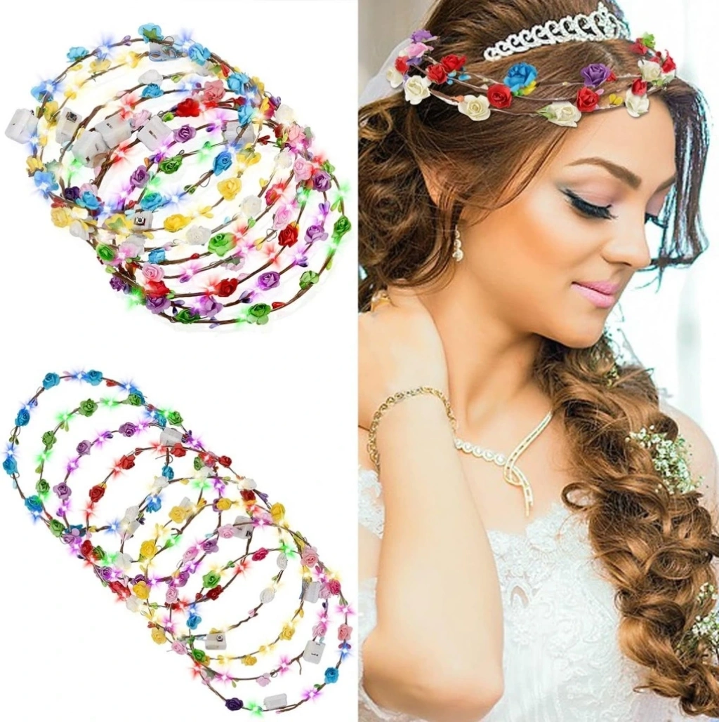 BFS Renkli LED Çiçek Taç – 3 Işık Modlu Parti Tacı