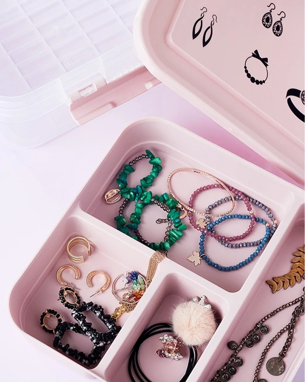Bijuteri Mücevher Kutusu - Çok Amaçlı Bölmeli Takı Saklama Kutusu