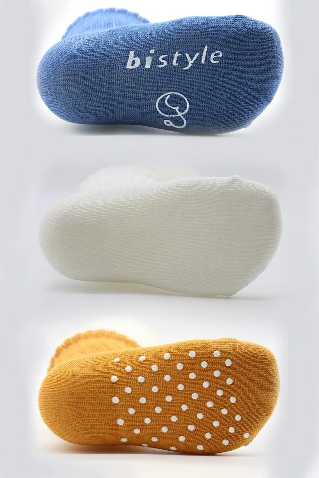 Bistyle Basic Kaymaz Penye Soket Çorap 3'Lü BS10107 İndigo Ekru Hardal