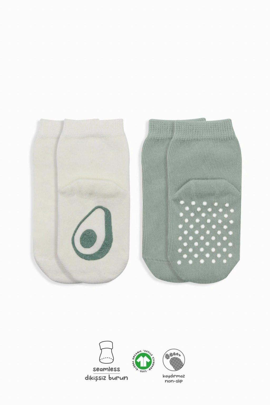 Bistyle Meyve Figürlü Kaymaz Soket Çorap 2'Li BS10105 Nil Ekru