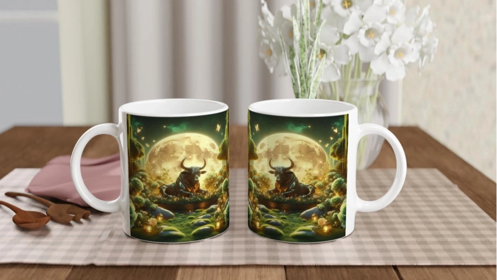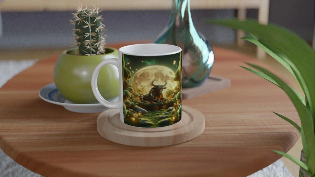 Boğa Burcu Baskılı Kahve Kupası - Ay ışığında Zodyak Bahçesi Vs4