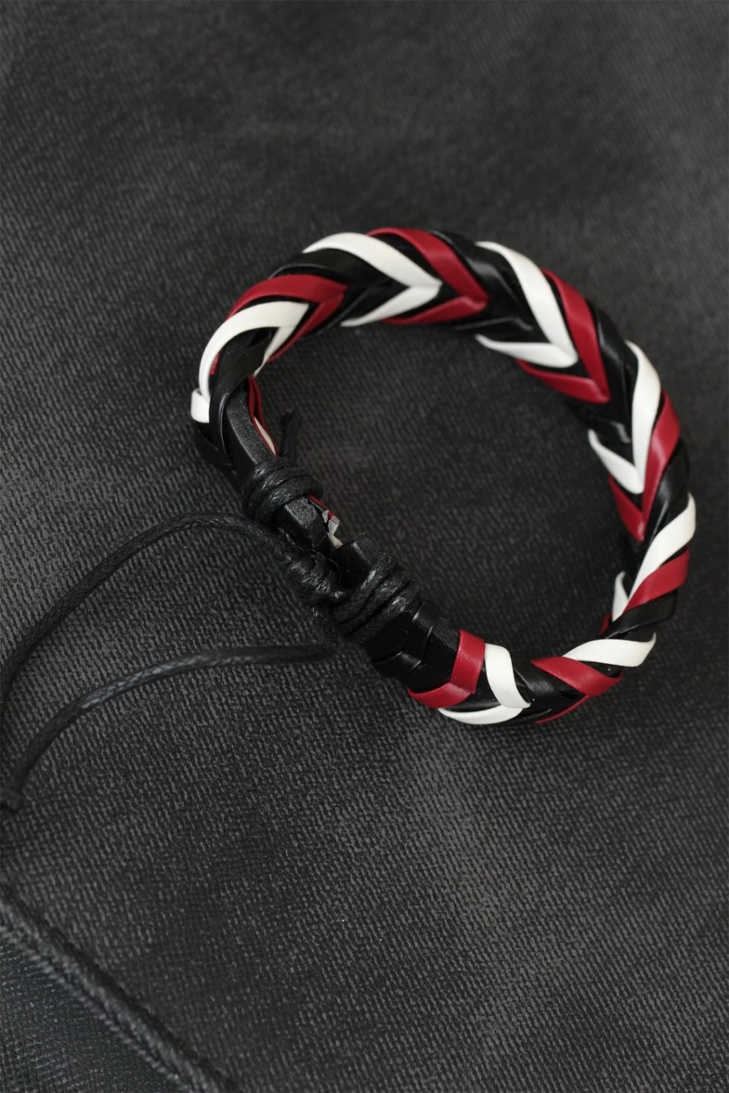 Bordo Beyaz Siyah Örgü Deri Erkek Bileklik