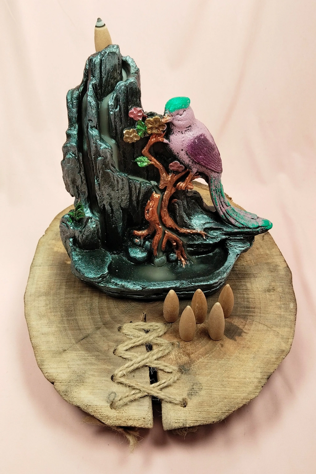 Buyuk Boy Kuş Figürlü Biblo Model Geri Akış Şelale Tütsülük 5 Adet Koni Hediye