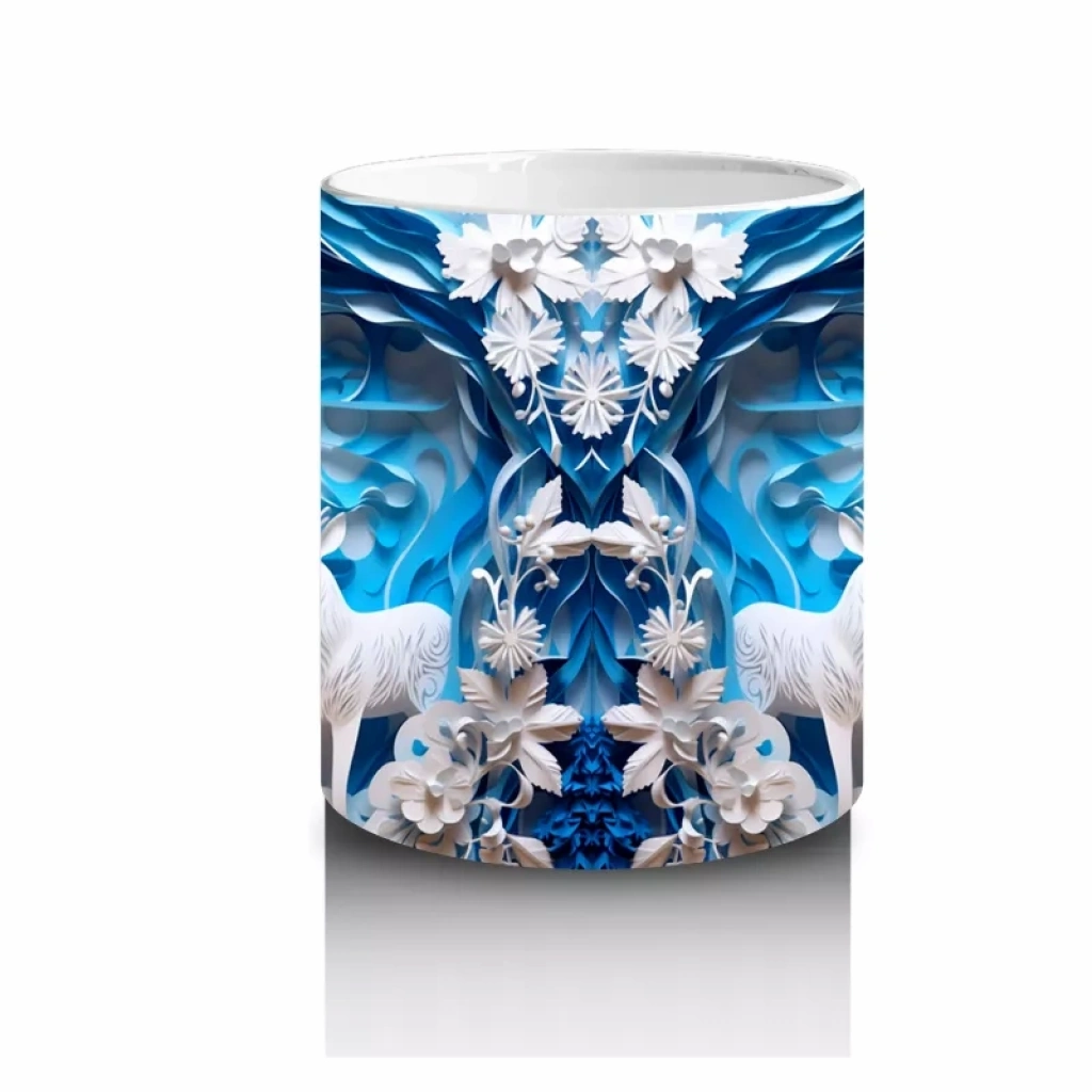 Buzlu Orman Arasında Beyaz Geyikler – Baskılı Kahve Kupası