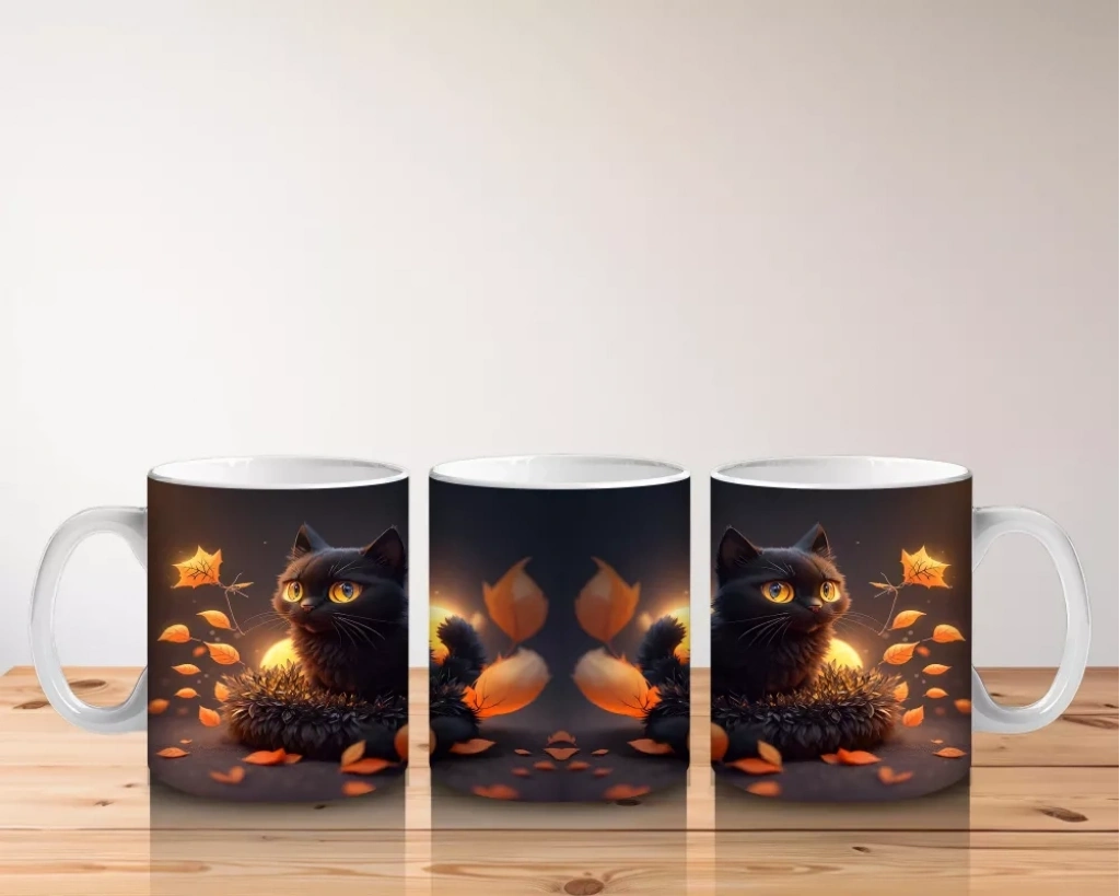 Cadılar Bayramı atmosferini yansıtan siyah kediler ve balkabağı ışıkları, gizemli ve eğlenceli bir görünüm sunuyor. Temalı ve dikkat çekici tasarımlar arayanlar için özel bir kupa.