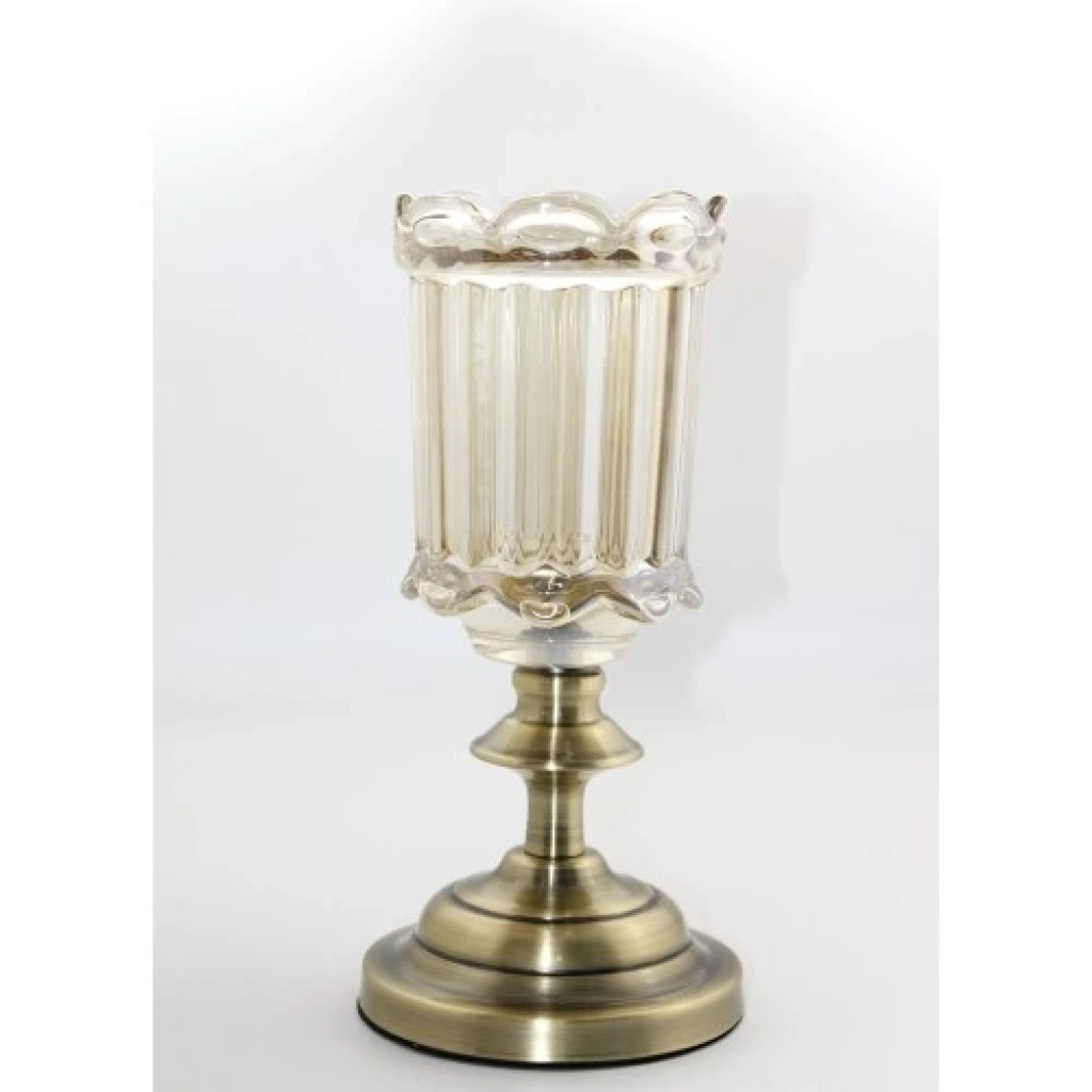 CAM ŞAMDAN TEKLİ MODEL 5Ürün ÖzellikleriZarif bir tasarıma sahip olan bu cam şamdan, altın detayları ve şık yapısıyla dikkat çeker. Hem modern hem de klasik dekorasyonlara uyum sağlar. Sadece şamdan olarak değil, estetik bir dekoratif obje olarak da kullanılabilir. Dayanıklı cam malzemeden üretilmiştir, uzun ömürlü kullanım sağlar. İster evde, ister ofiste kullanabileceğiniz bu şamdan, sofistike bir atmosfer yaratır.Paket İçeriği1 Adet Cam Şamdan Tekli Model 5