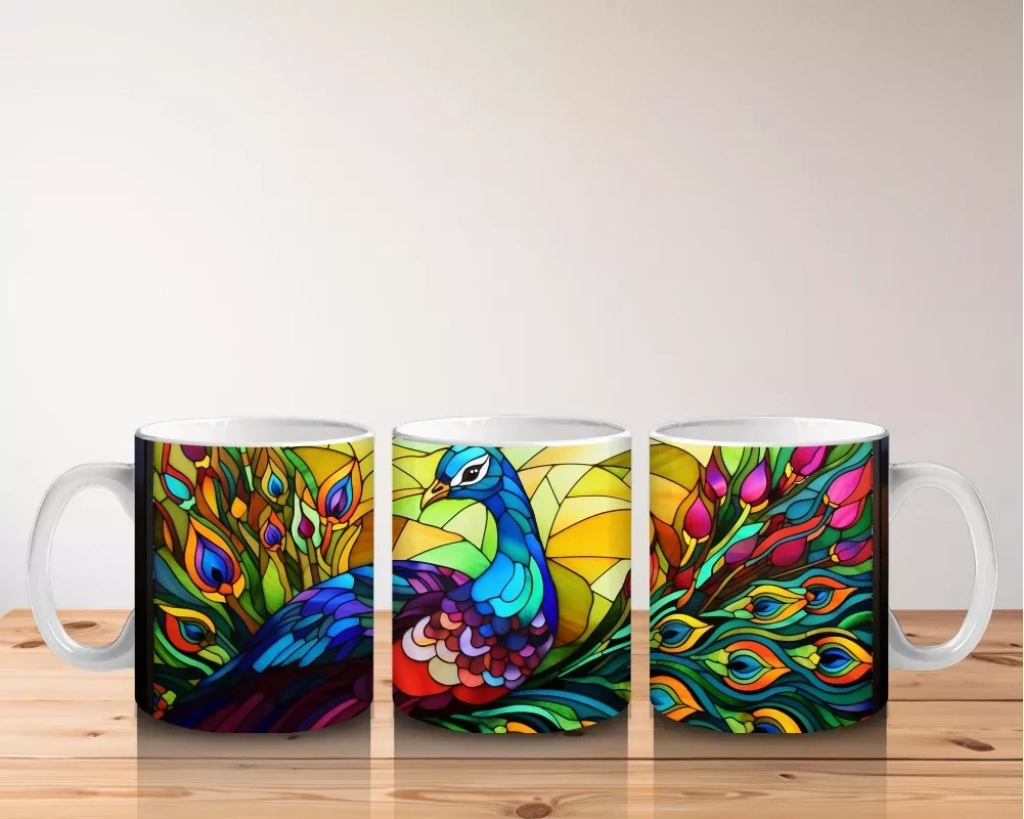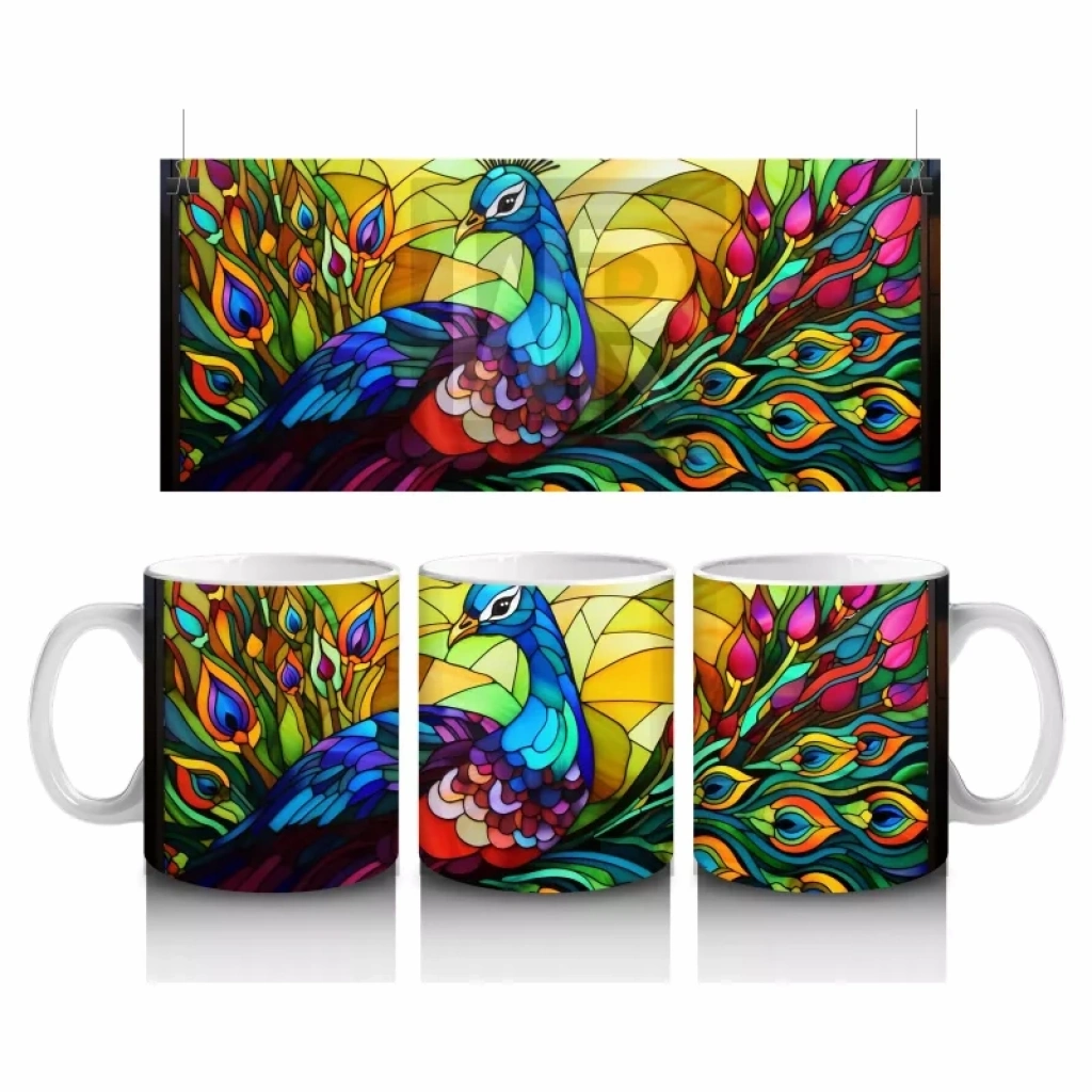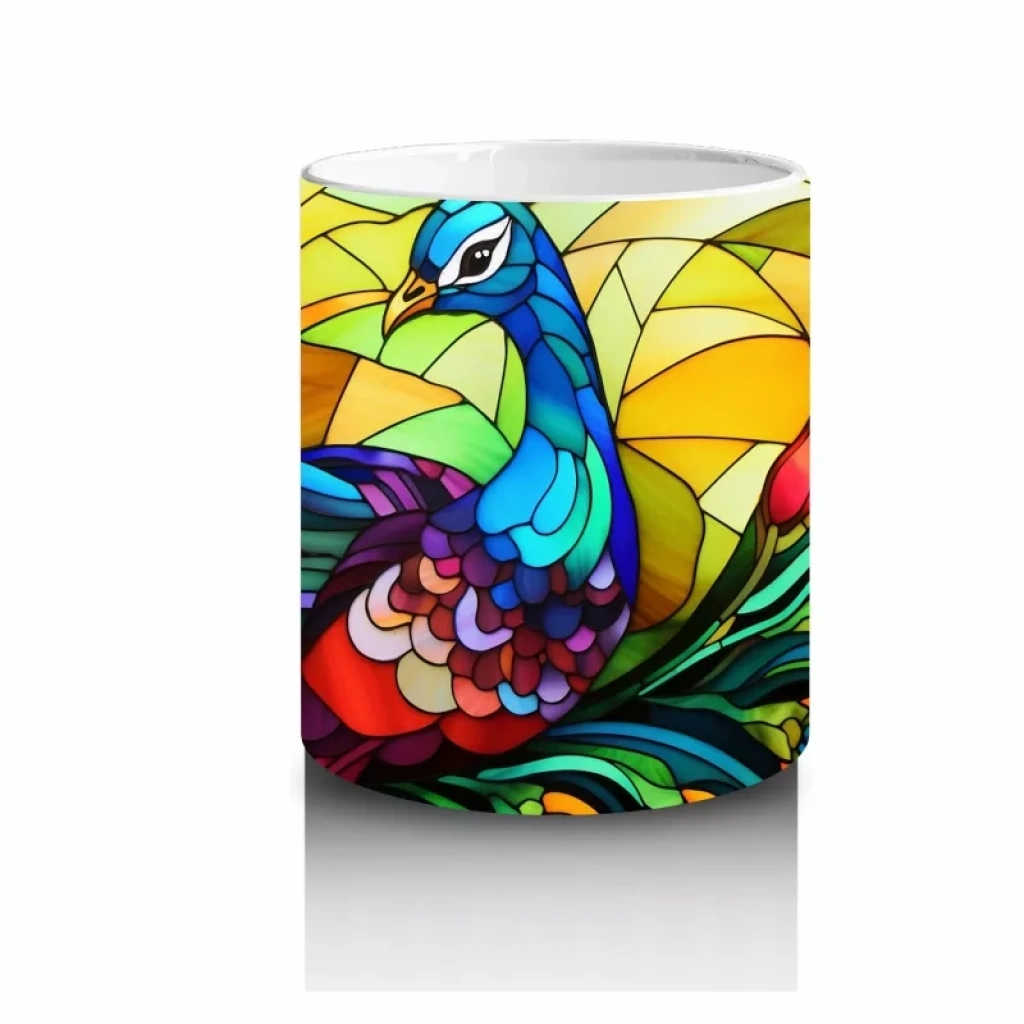Mozaik desenlerle işlenmiş canlı renkli tüyleriyle bu tavus kuşu, göz kamaştıran zarif bir görünüm sunuyor. Sanatsal dokunuşlarla hazırlanmış, estetik ve özgün bir kupa modeli.