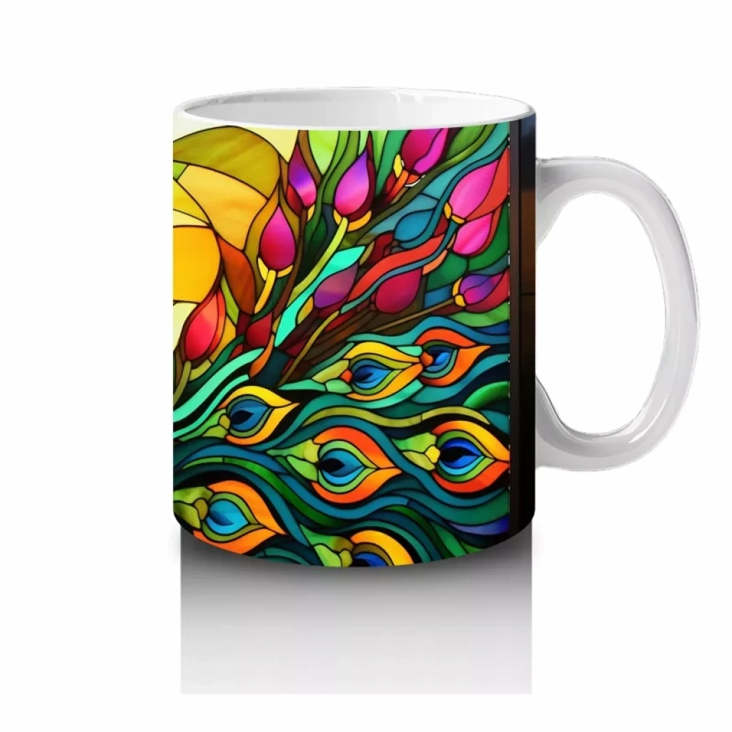 Canlı Renkli Tüyleriyle Mozaik Tavus Kuşu – Baskılı Kahve Kupası