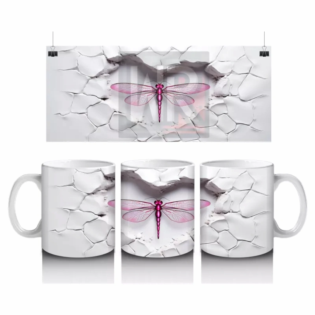 Çatlak duvarın arasından zarifçe süzülen mor kanatlı yusufçuk, gizemli ve büyüleyici bir atmosfer yaratıyor. Renkli ve etkileyici detayları sevenler için özgün bir kupa tasarımı.