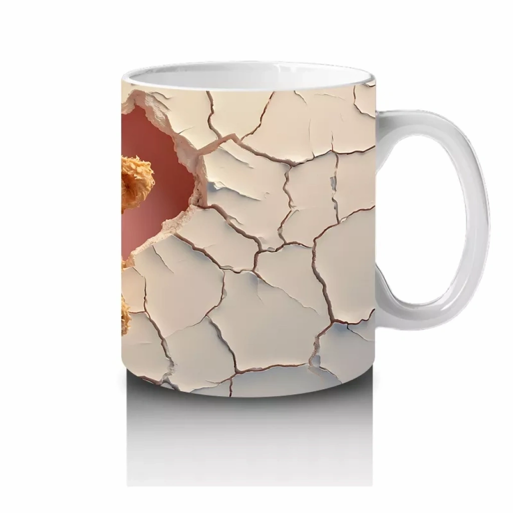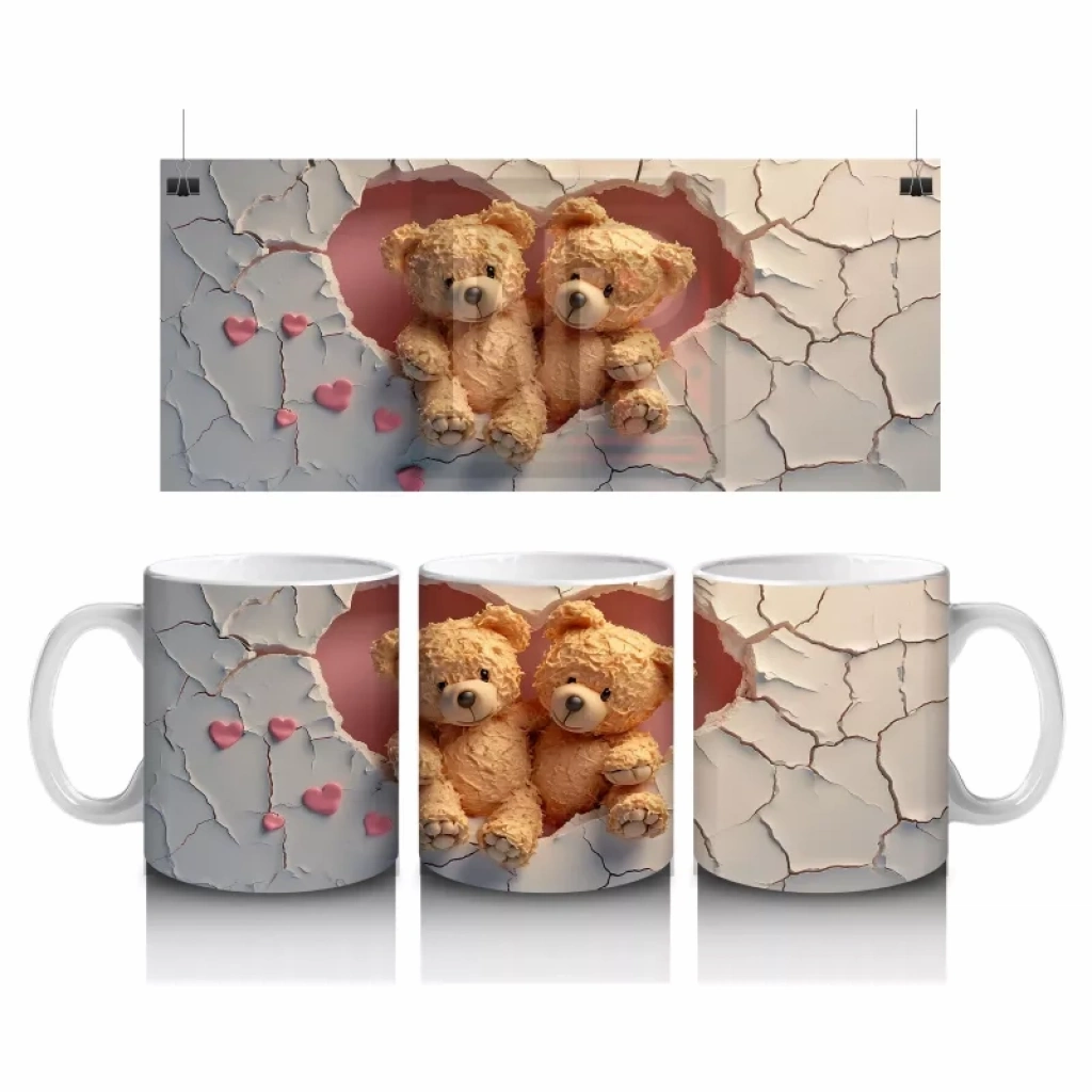 Çatlak Duvar Arasında Sarılmış İki Peluş Ayıcık – Baskılı Kahve Kupası