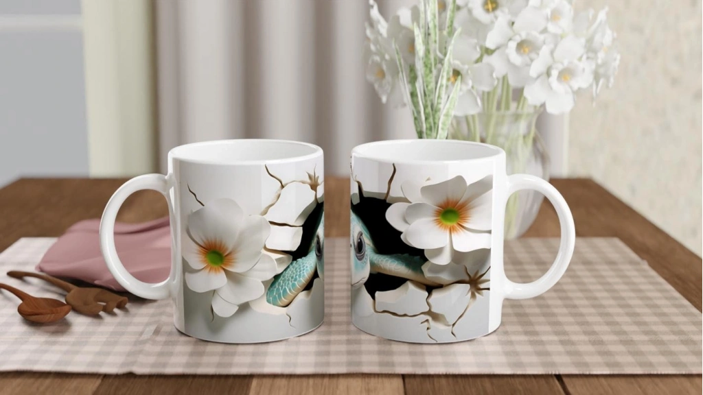 Kırık yüzeylerden sızan bir sevimlilik: Bu özel tasarım kupa bardak, su altı dünyasını minimal ve etkileyici bir tarzla yaşam alanınıza getiriyor.