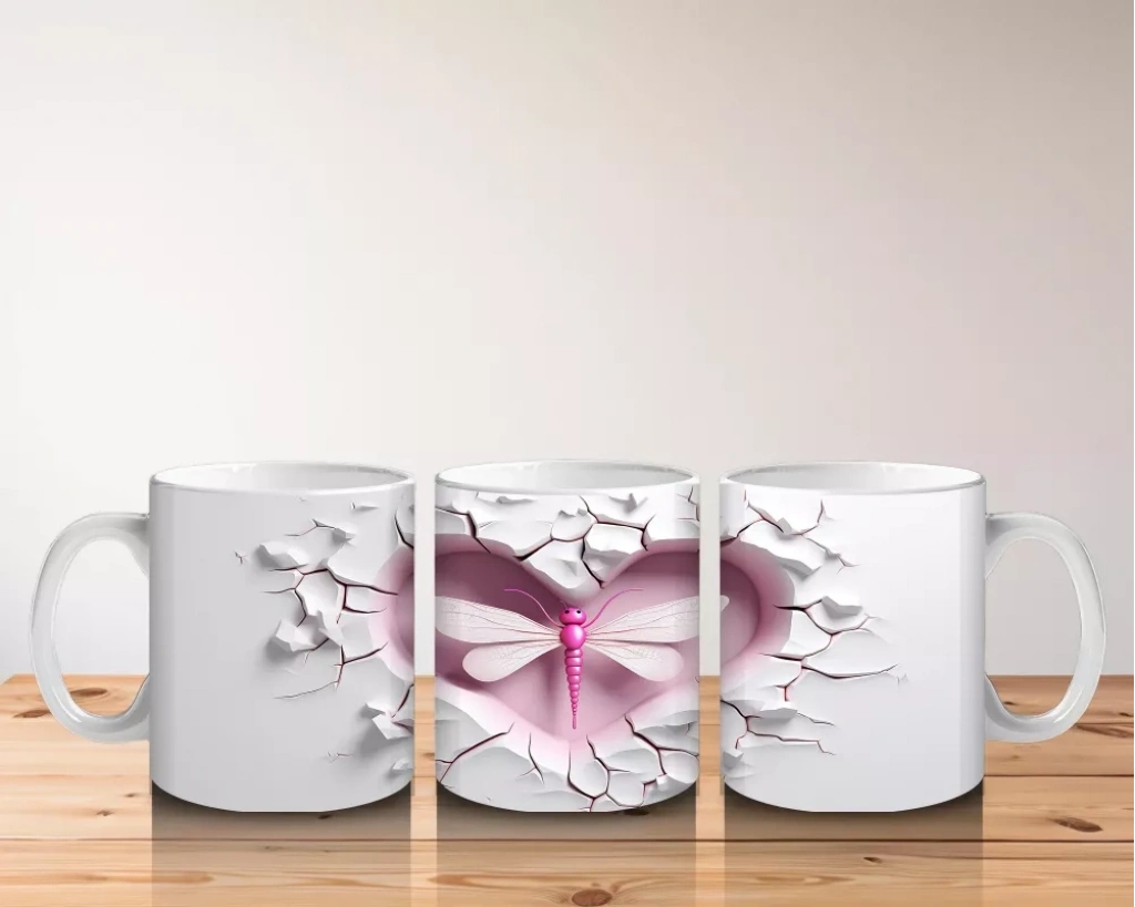 Çatlak duvarın üzerinde ışıldayan pembe yusufçuk, sadelik ve zarafeti bir araya getiriyor. Doğanın hafifliğini yansıtan bu tasarım, sakin ve estetik bir kupa arayanlara özel.