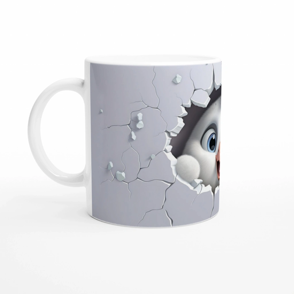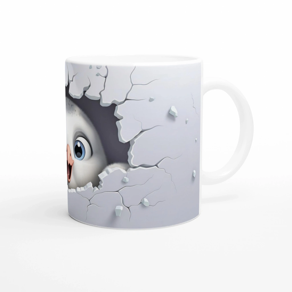 Çatlak Duvardan Bakan Penguen Yavrusu Temalı Baskılı Kupa Bardak, gri tonlardaki çatlak duvar efektiyle çevrelenmiş sevimli bir penguen yavrusunun mutlu bakışlarını sergiliyor. Güne gülümseyerek başlamak isteyenler için eğlenceli ve canlı bir tercih.