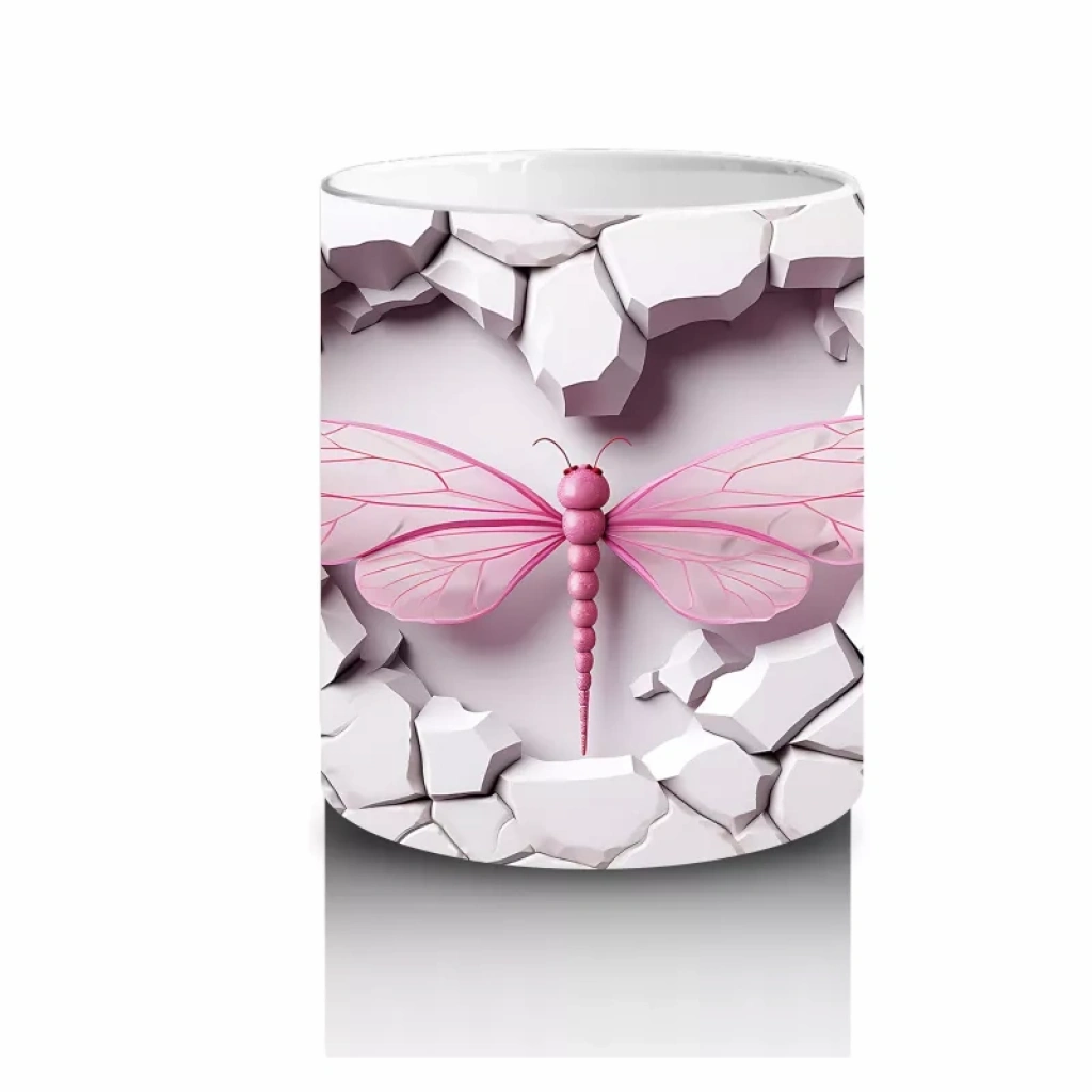 Çatlak Pembe Duvar Üzerinde Yusufçuk – Baskılı Kahve Kupası