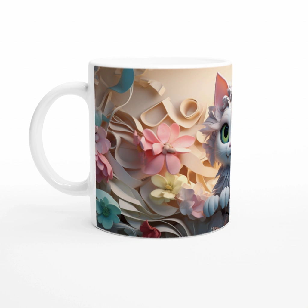 Çiçek Bahçesindeki Sevimli Tüylü Kedi Baskılı Kupa Bardak, yumuşak detayları ve tatlı bakışlarıyla sabah kahvelerinize neşe katıyor, ruhunuza bahar getiriyor.