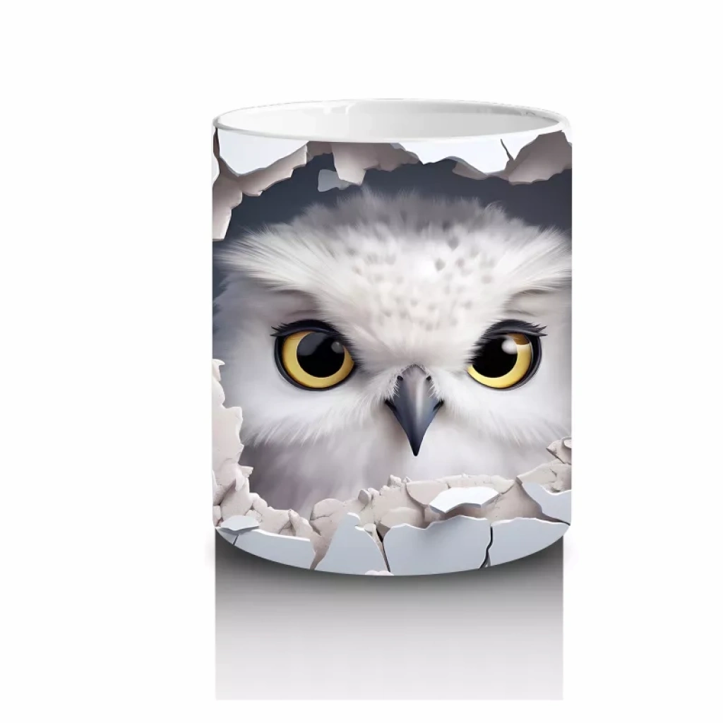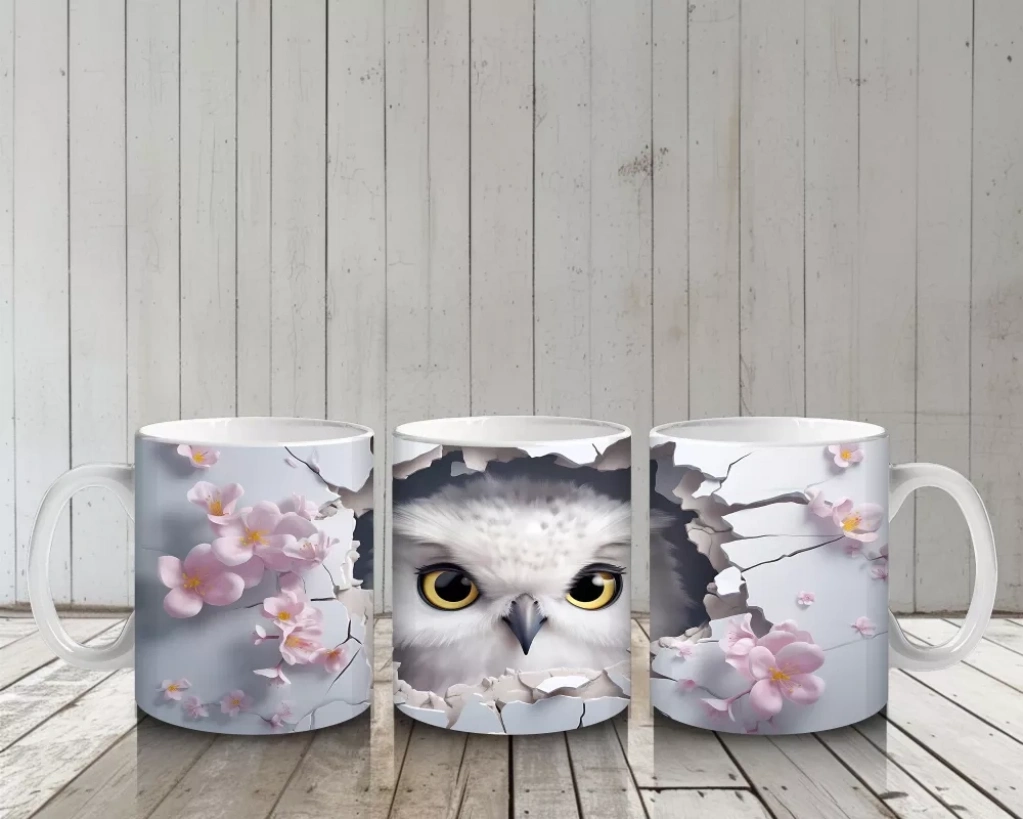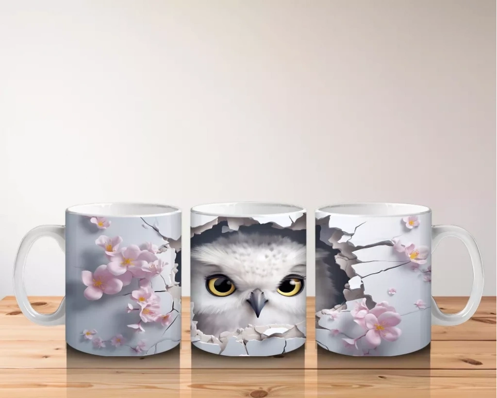 Çiçek Desenli Fon Üzerinde Baykuş Figürü – Baskılı Kupa